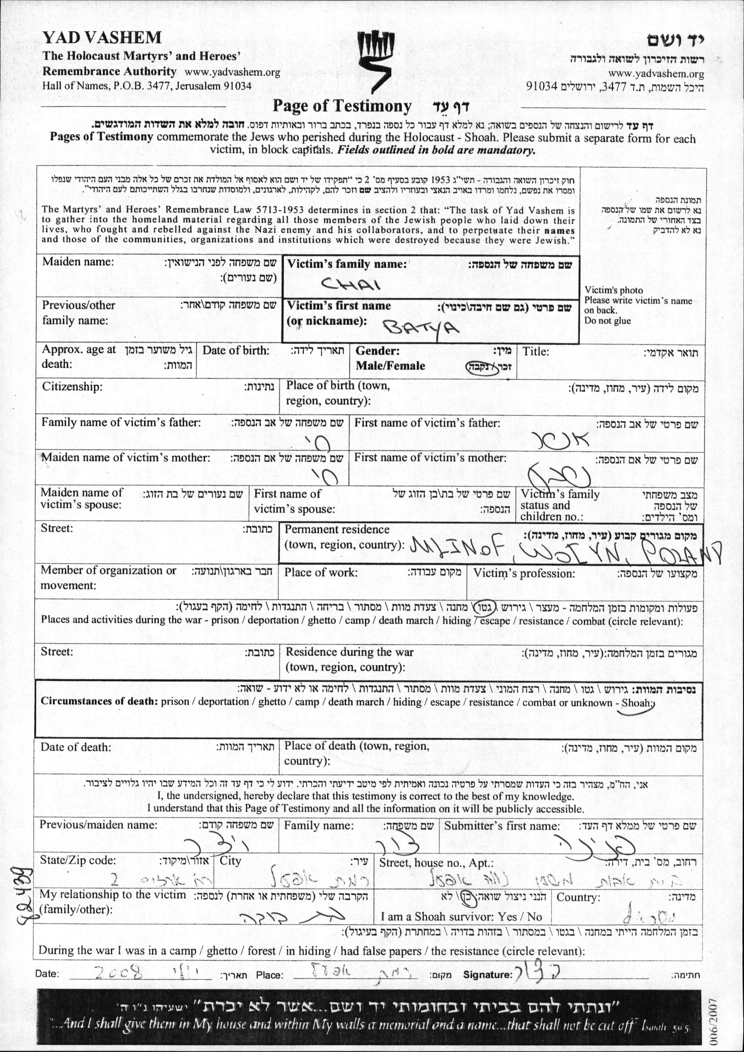 יד ושם - המפעל להנצחת השמות בדפי עד