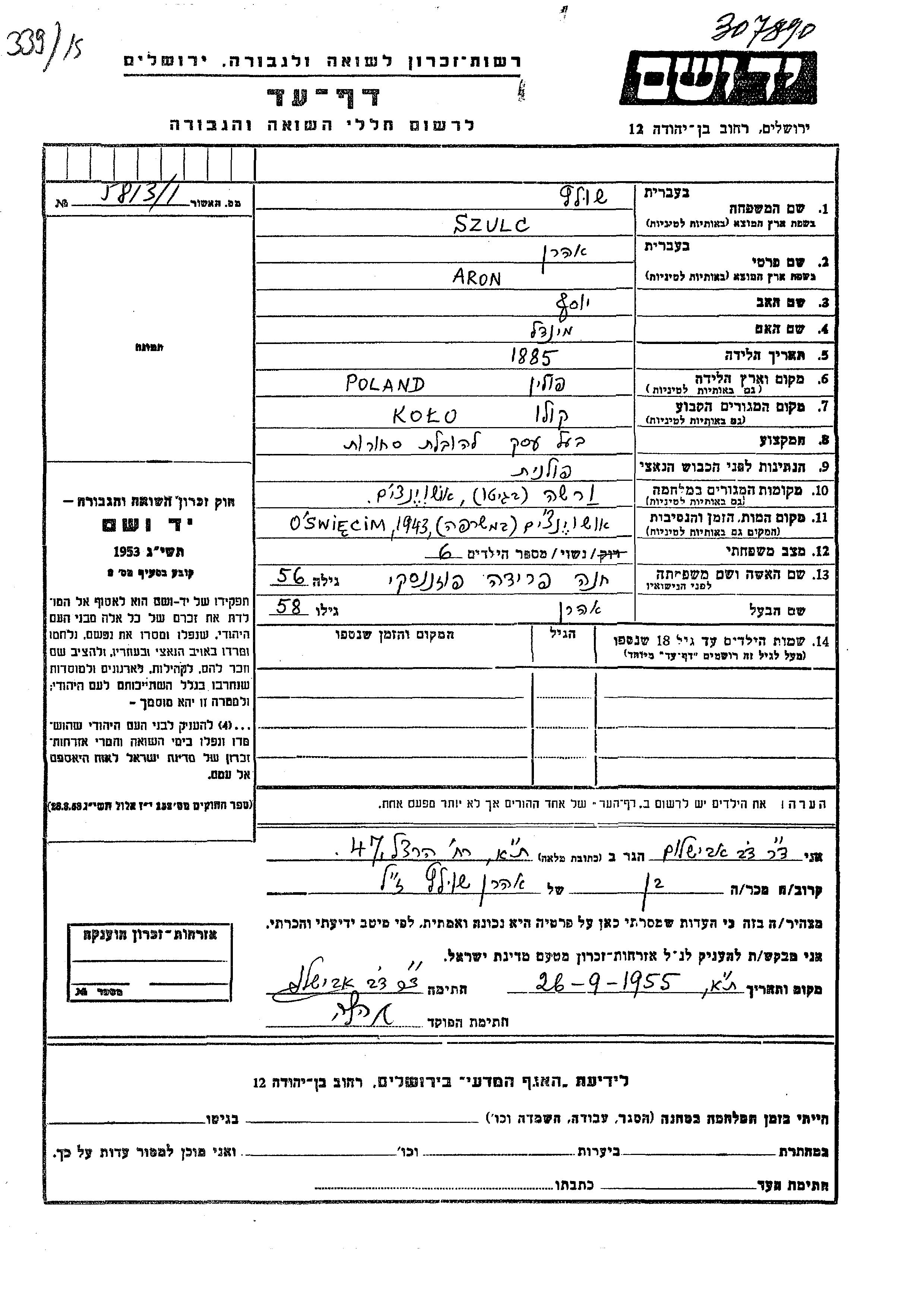 יד ושם - המפעל להנצחת השמות בדפי עד