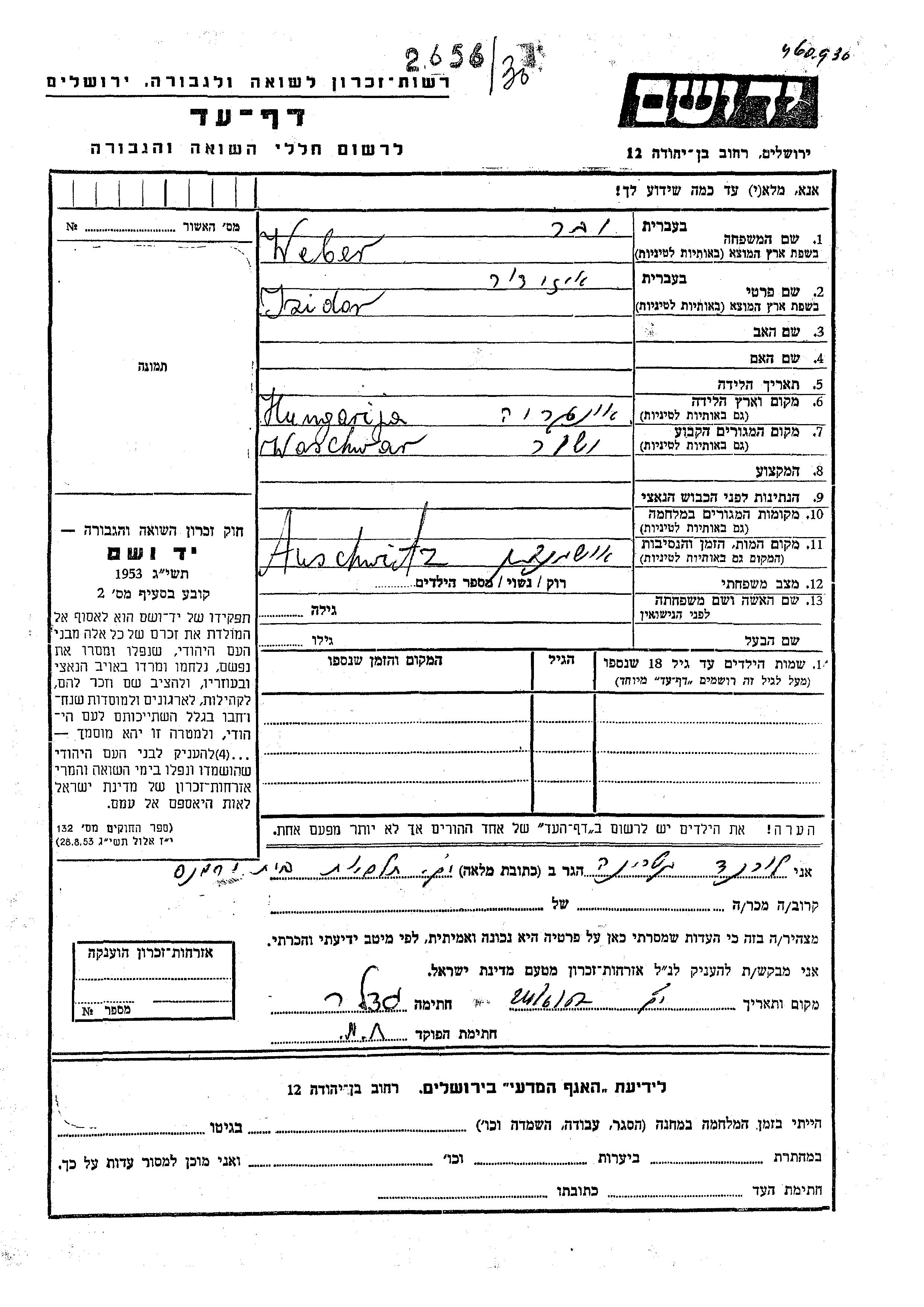 Weber ובר Yzidor Waschwar, הונגריה דף-עד