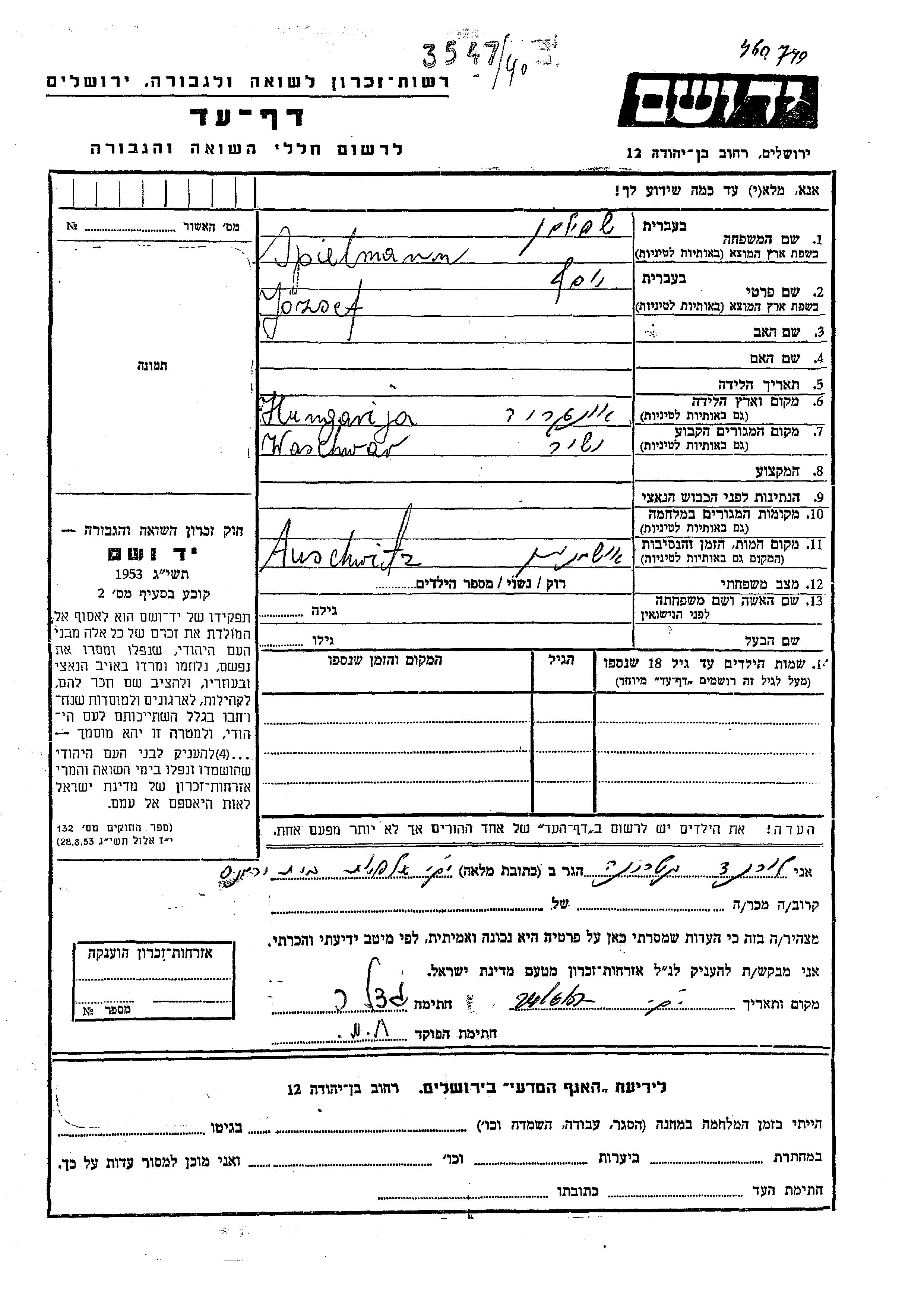 יד ושם - המפעל להנצחת השמות בדפי עד