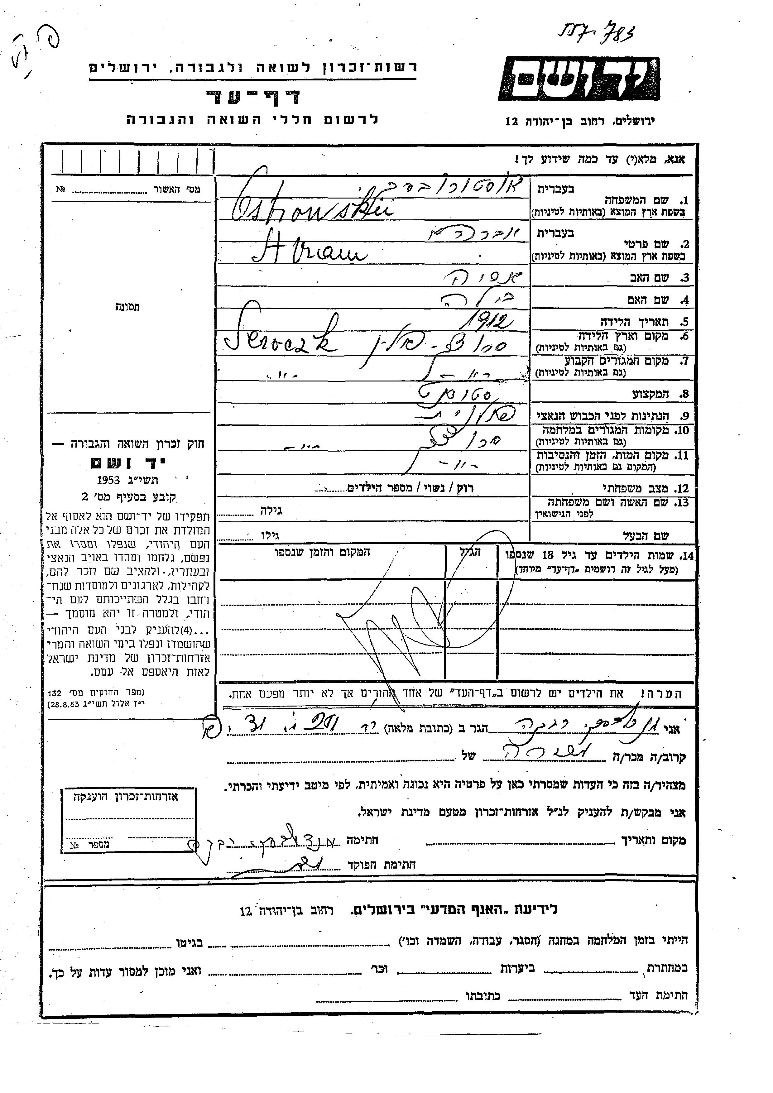 Ostrowski Avram 1912 Serock, פולין דף-עד