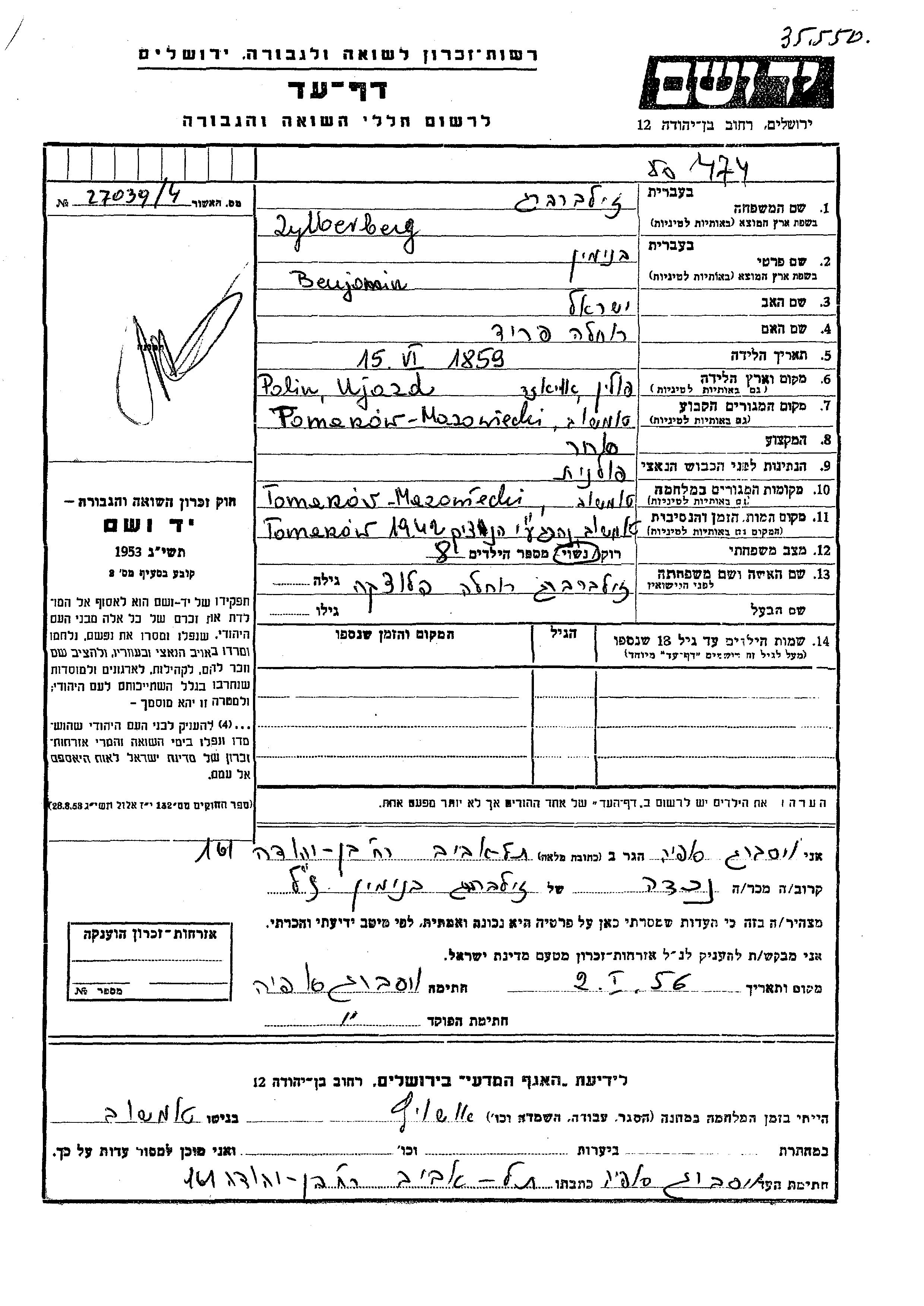 Zylberberg Benjamin 1859 Tomaszow, פולין דף-עד