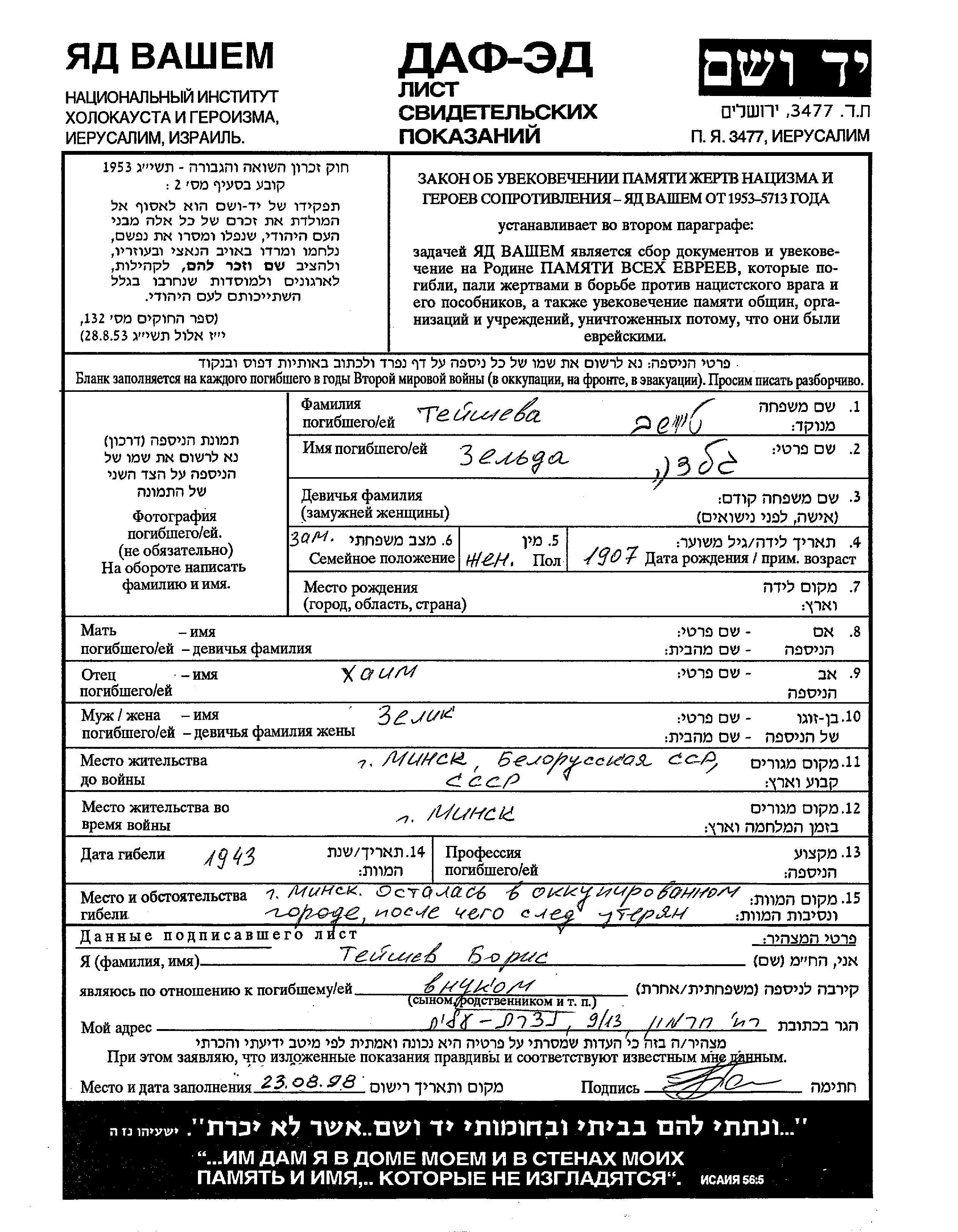 חיפוש שם מוסר דף העד. חיפוש לפי כל שם פרטי, כולל כינוי או שם חיבה