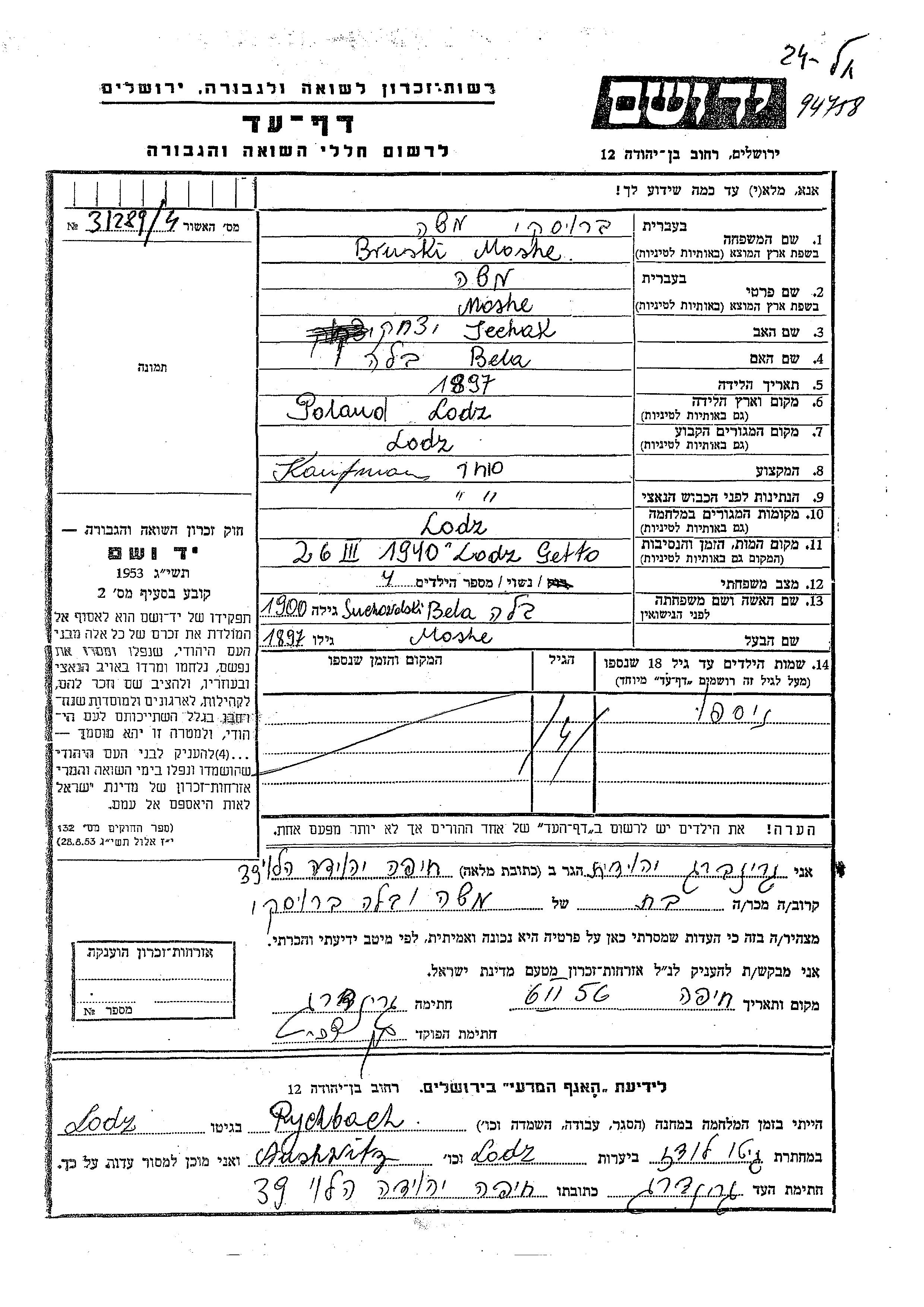 משה נרצח בשואה. מקום המוות: Lodz שבפולין בשנת 26/03/1940.