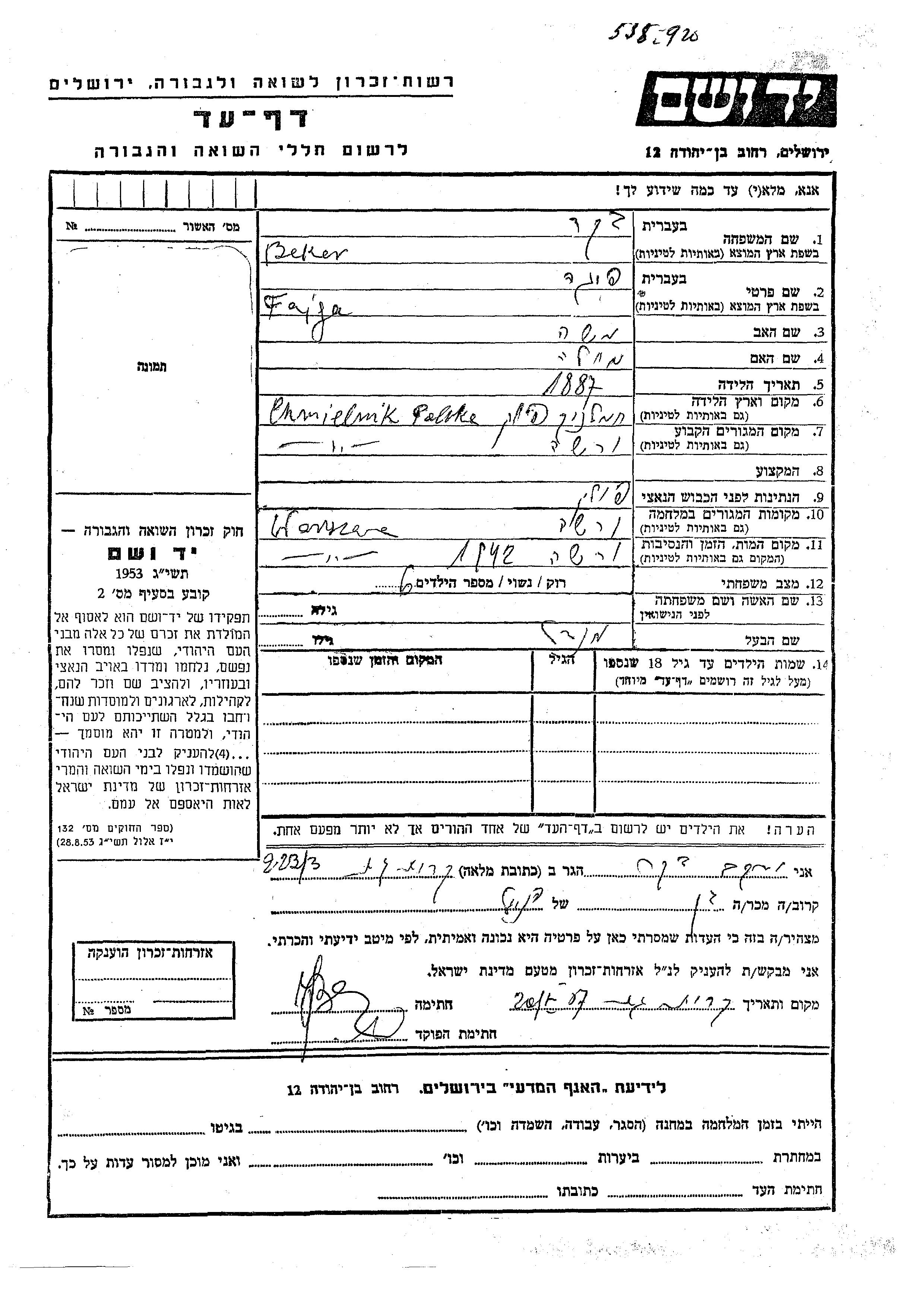 Faiga בקר נולדה בChmielnik שבפולין בשנת 1887 למשה ומחלה. היא היתה נשואה למנדל. לפני מלחמת העולם השניה התגוררה בChmielnik שבפולין. בזמן המלחמה היא היתה בWarszawa שבפולין. היא נרצחה בשואה. מקום המוות: Warszawa שבפולין בשנת 1942.