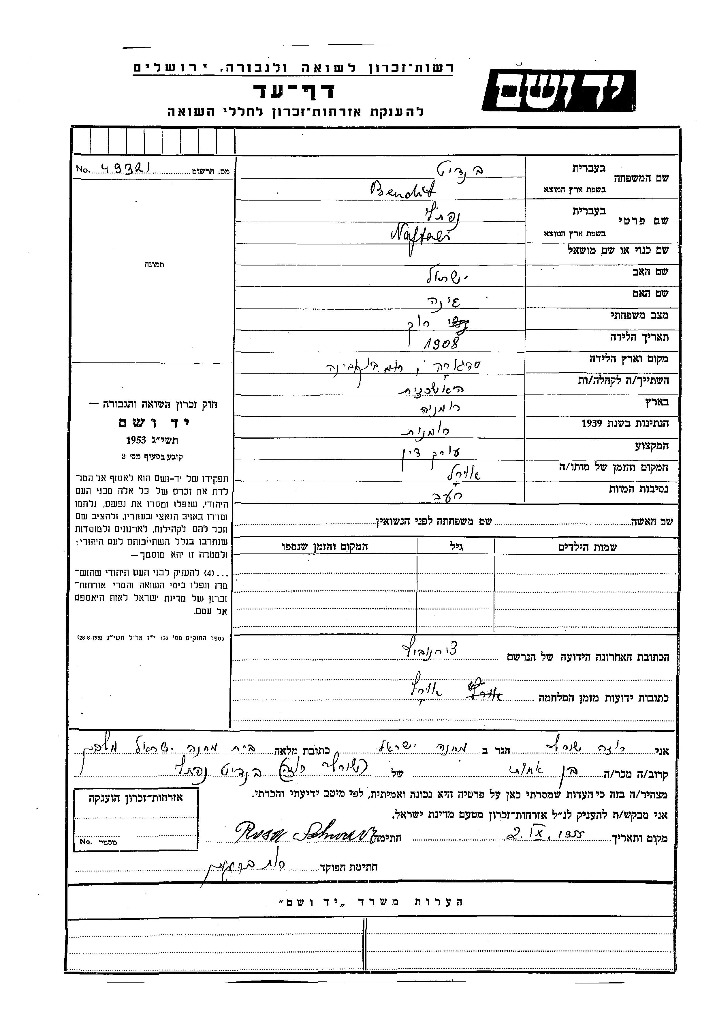 בנדיט נפתלי 1908 רומניה דף-עד