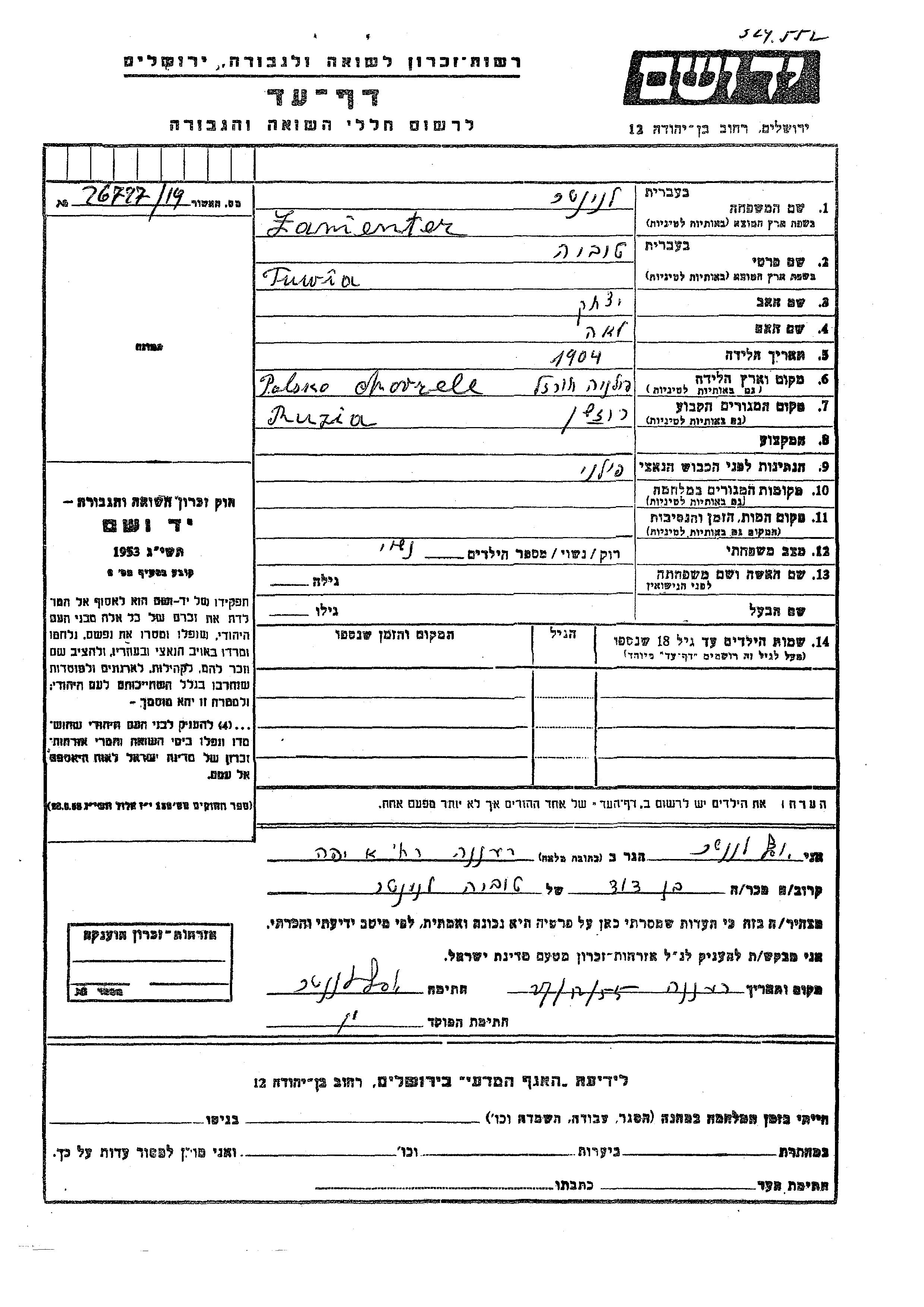 יד ושם - המפעל להנצחת השמות בדפי עד