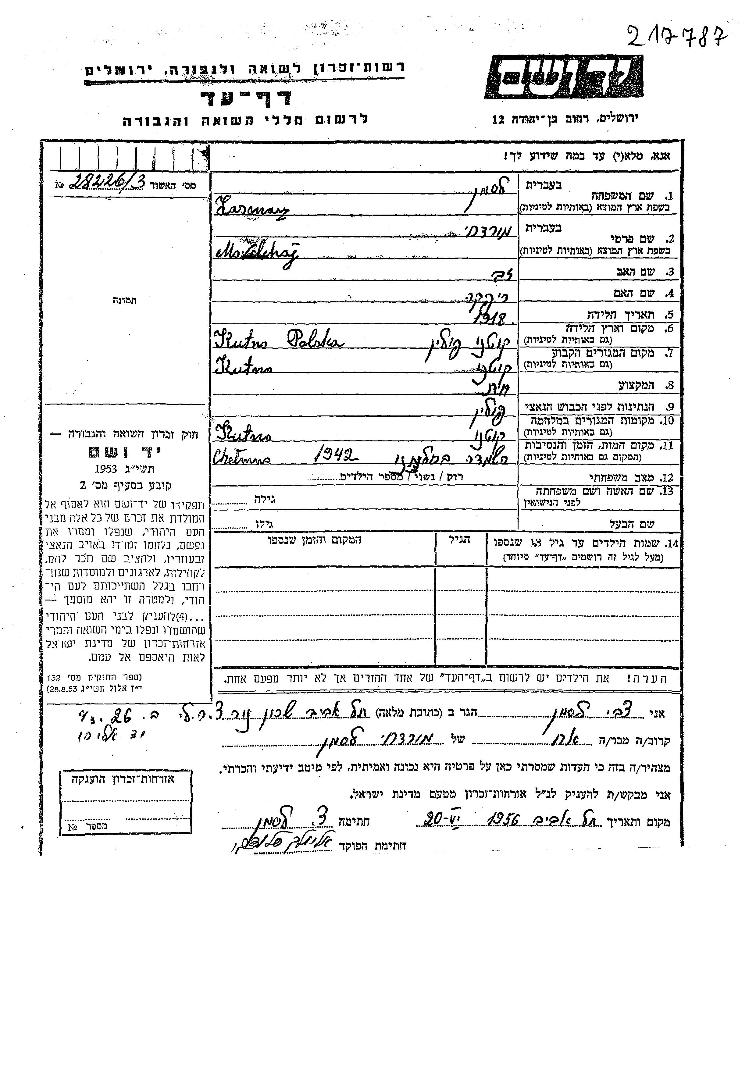 יד ושם - המפעל להנצחת השמות בדפי עד