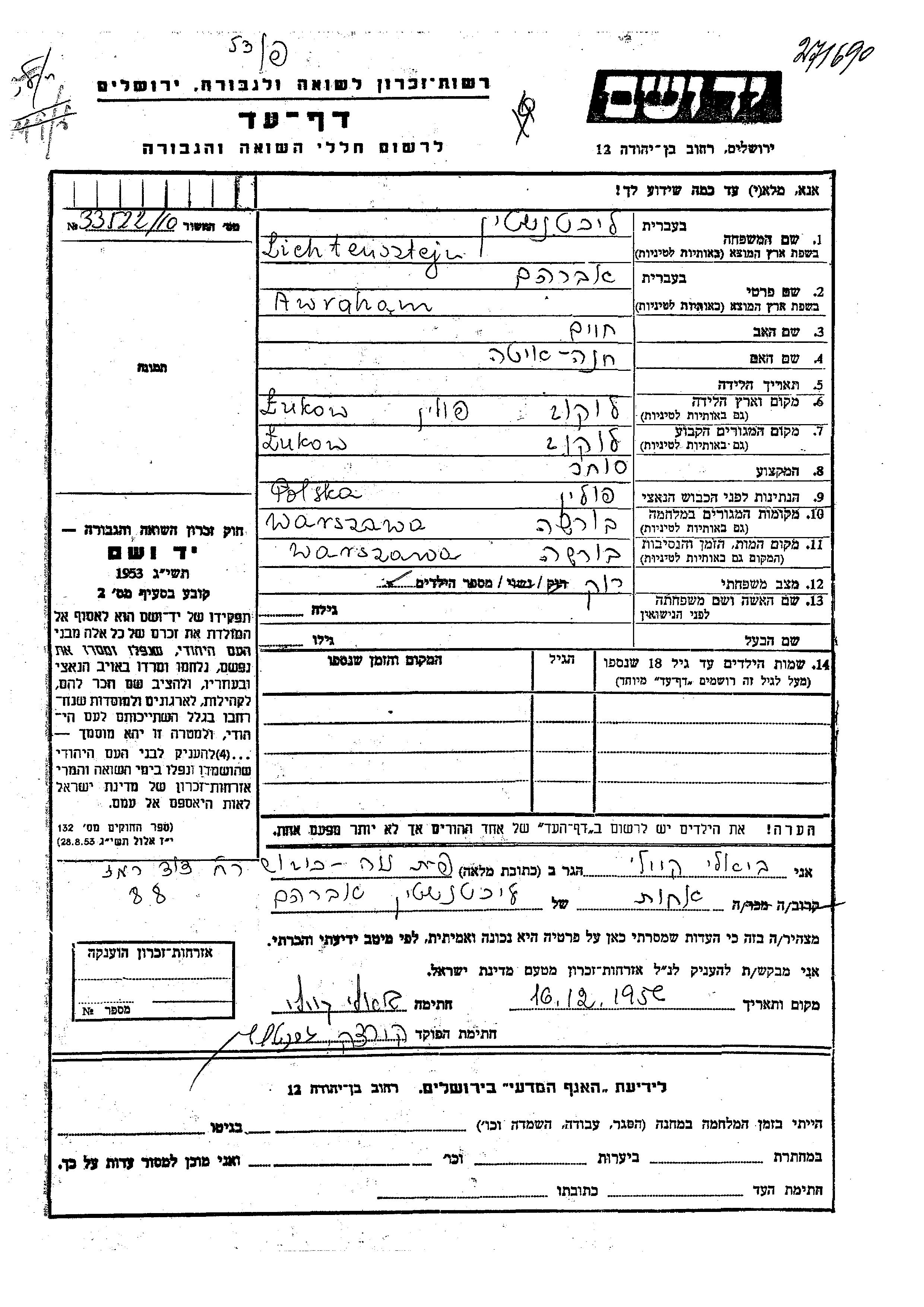 Lichtensztejn Awraham Lukow, פולין דף-עד