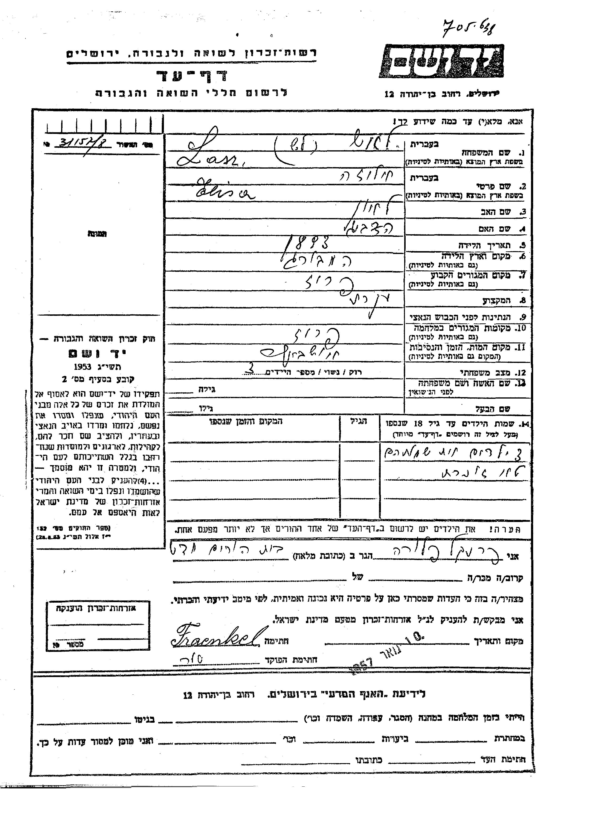 יד ושם - המפעל להנצחת השמות בדפי עד