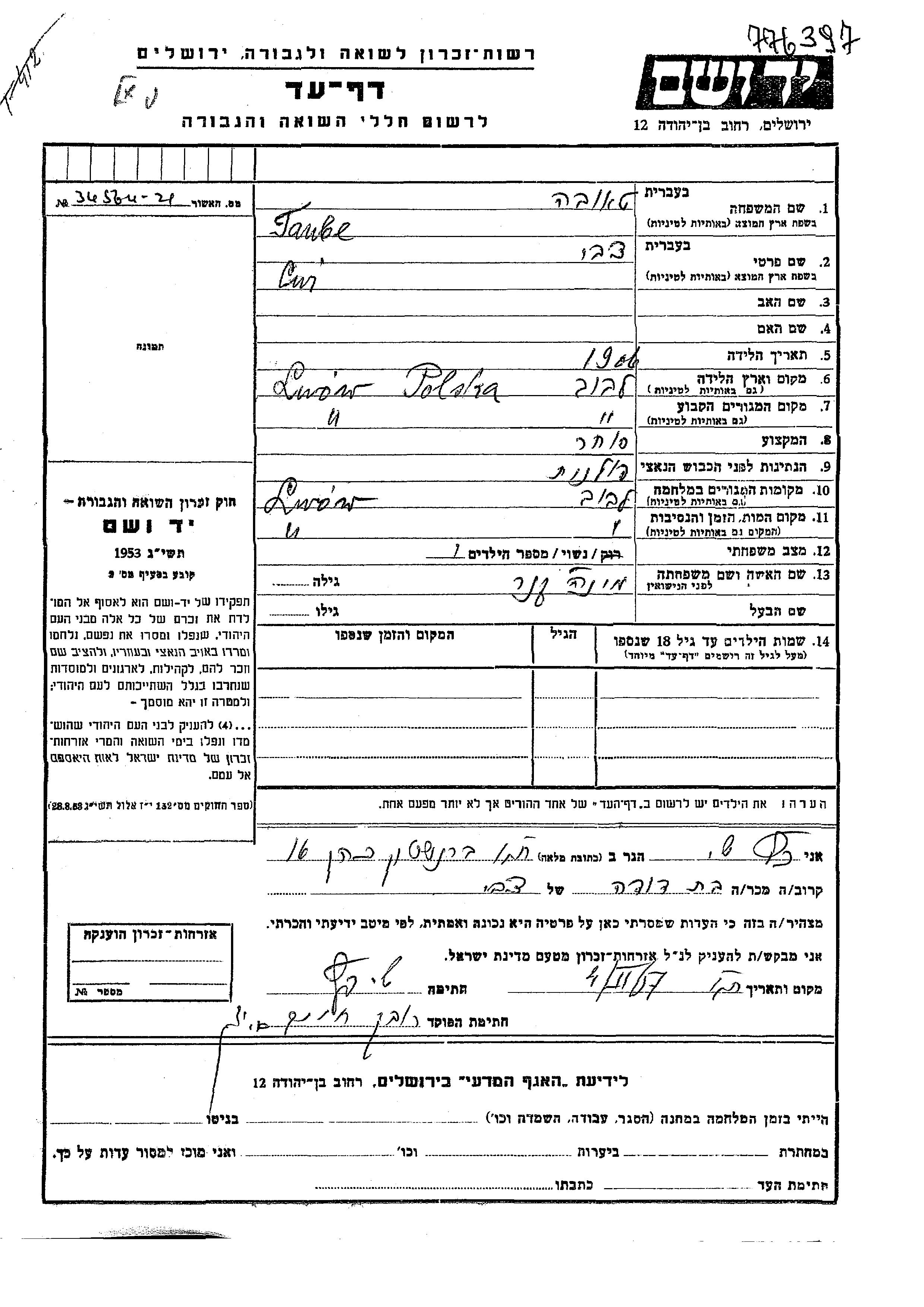 יד ושם - המפעל להנצחת השמות בדפי עד