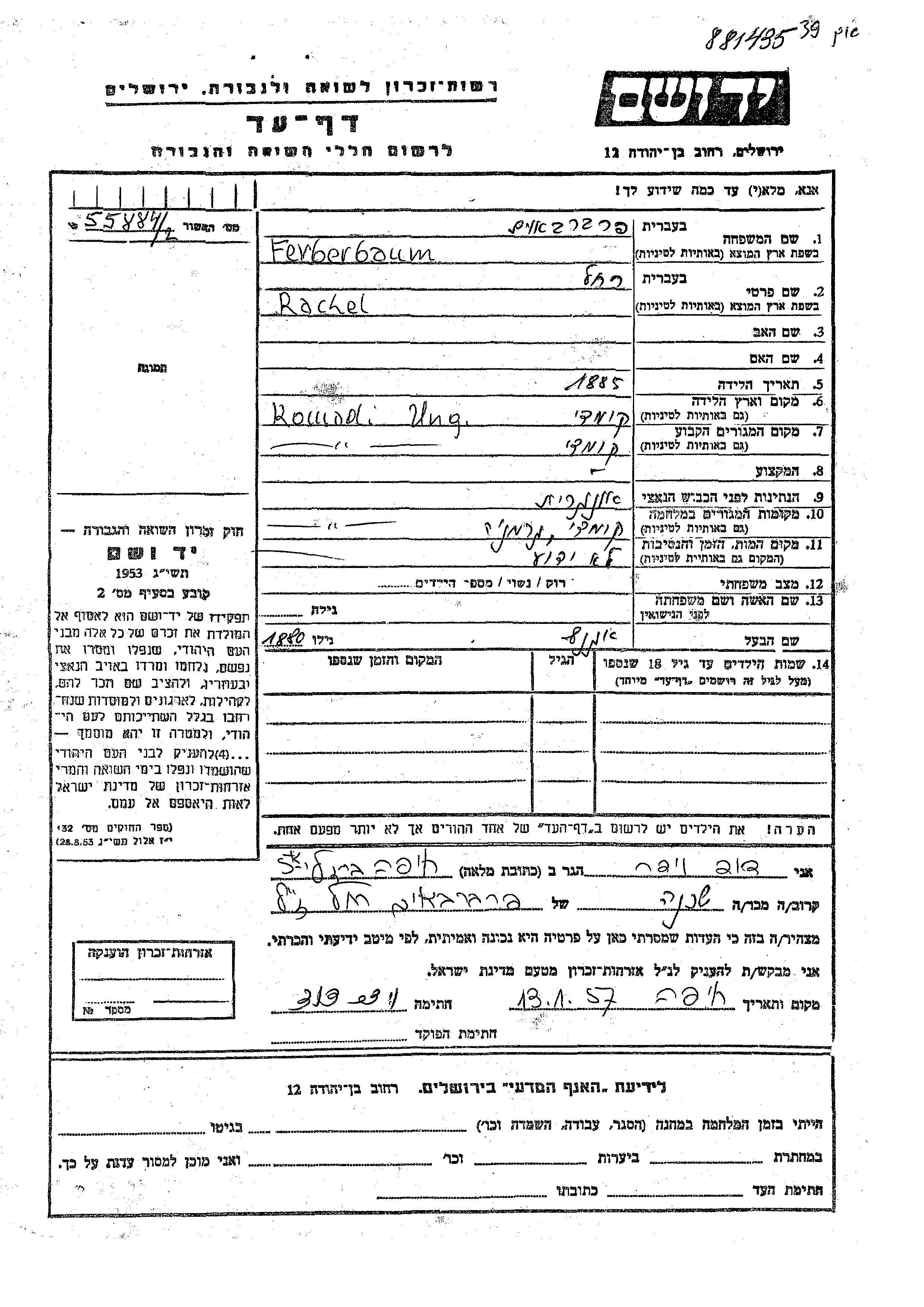 יד ושם - המפעל להנצחת השמות בדפי עד