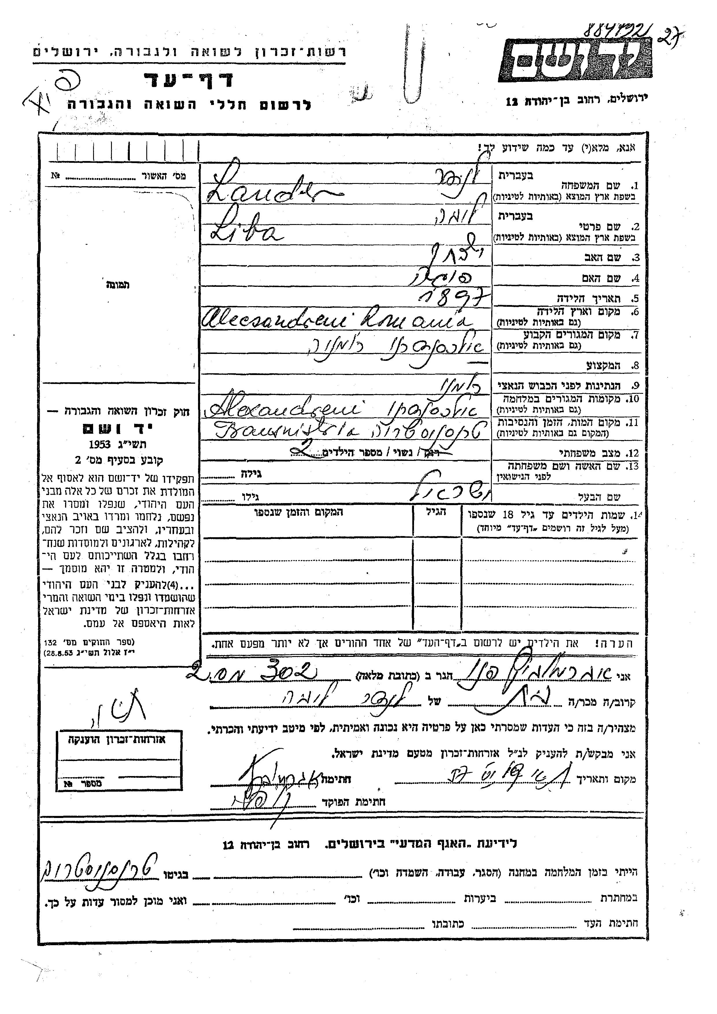 יד ושם - המפעל להנצחת השמות בדפי עד
