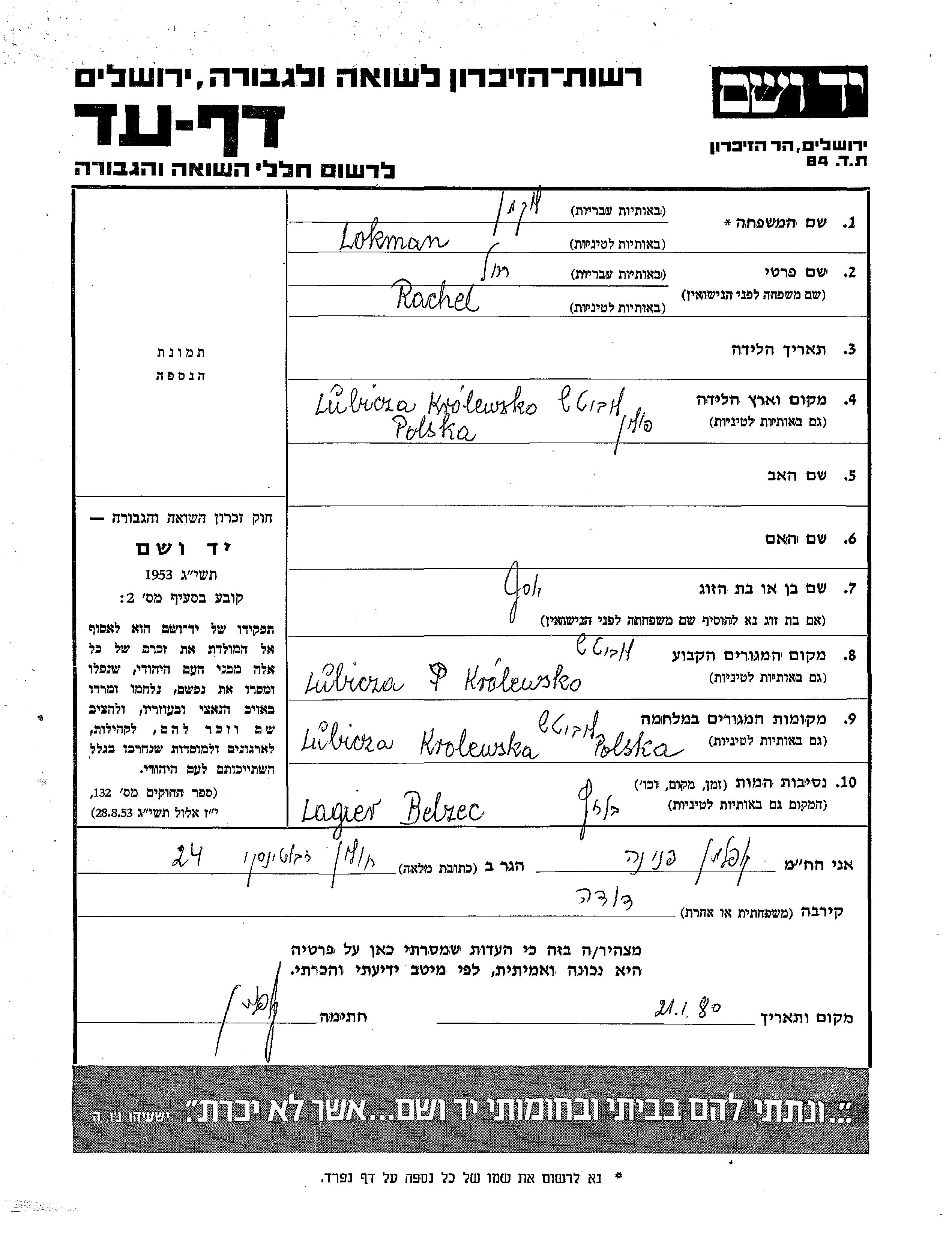 לוקמן רחל Lubycza Krolewska, פולין דף-עד