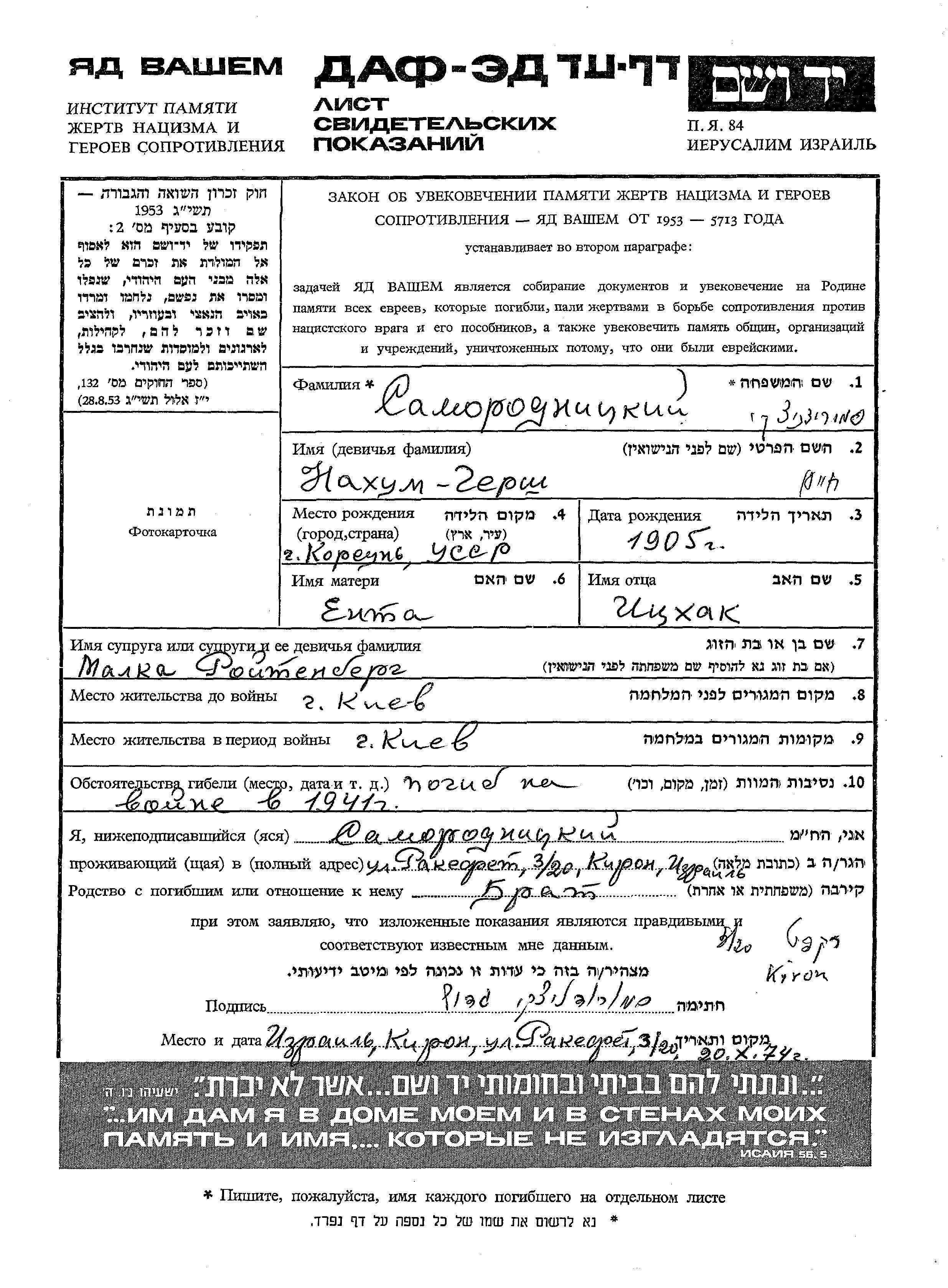 Samorodnitski גרש חיים נחום 1905 Kiev, אוקראינה (ברה"מ) דף-עד