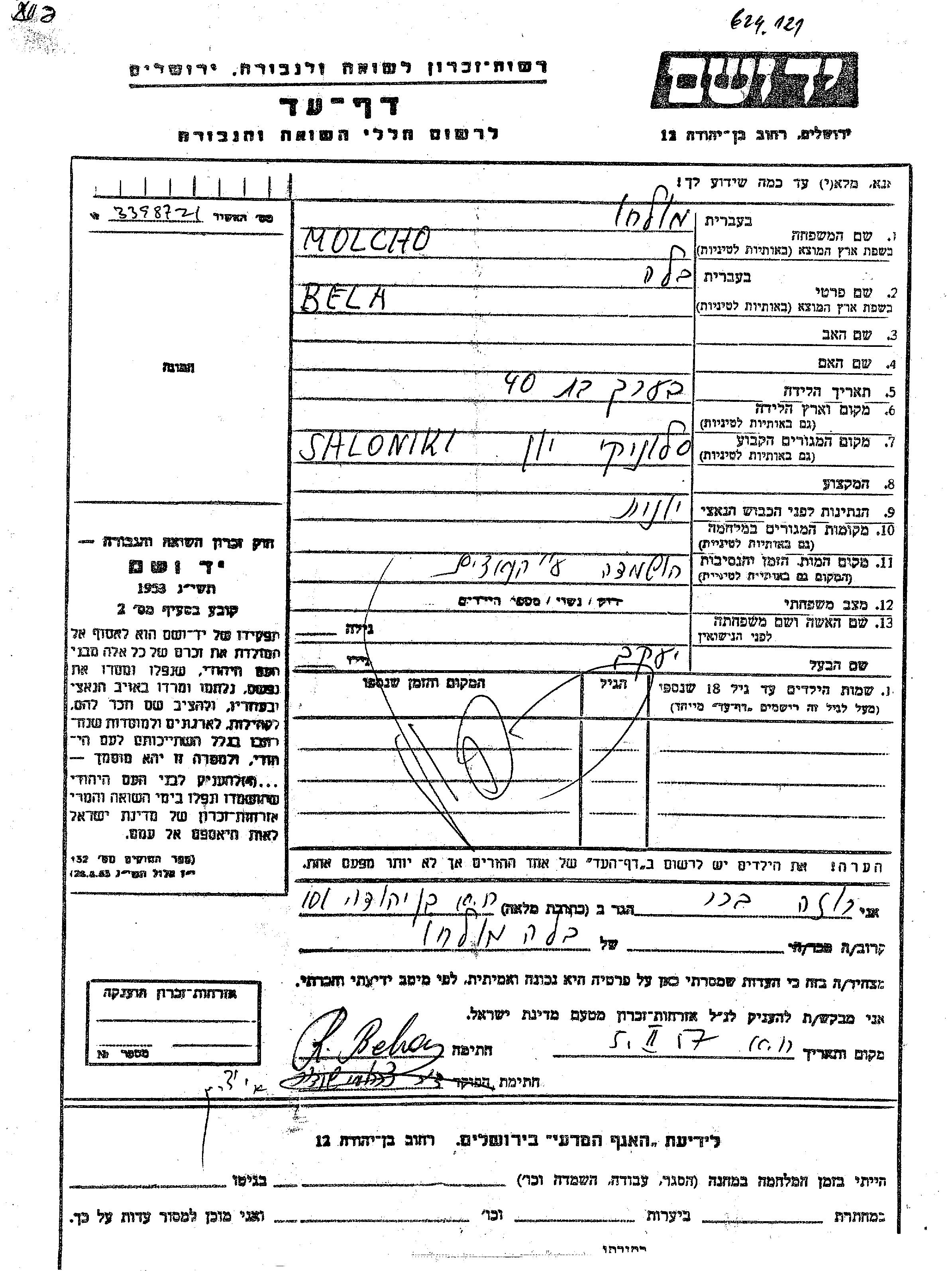 בלה Molcho. היא היתה נשואה ליעקב. לפני מלחמת העולם השניה התגוררה בSaloniki שביון.