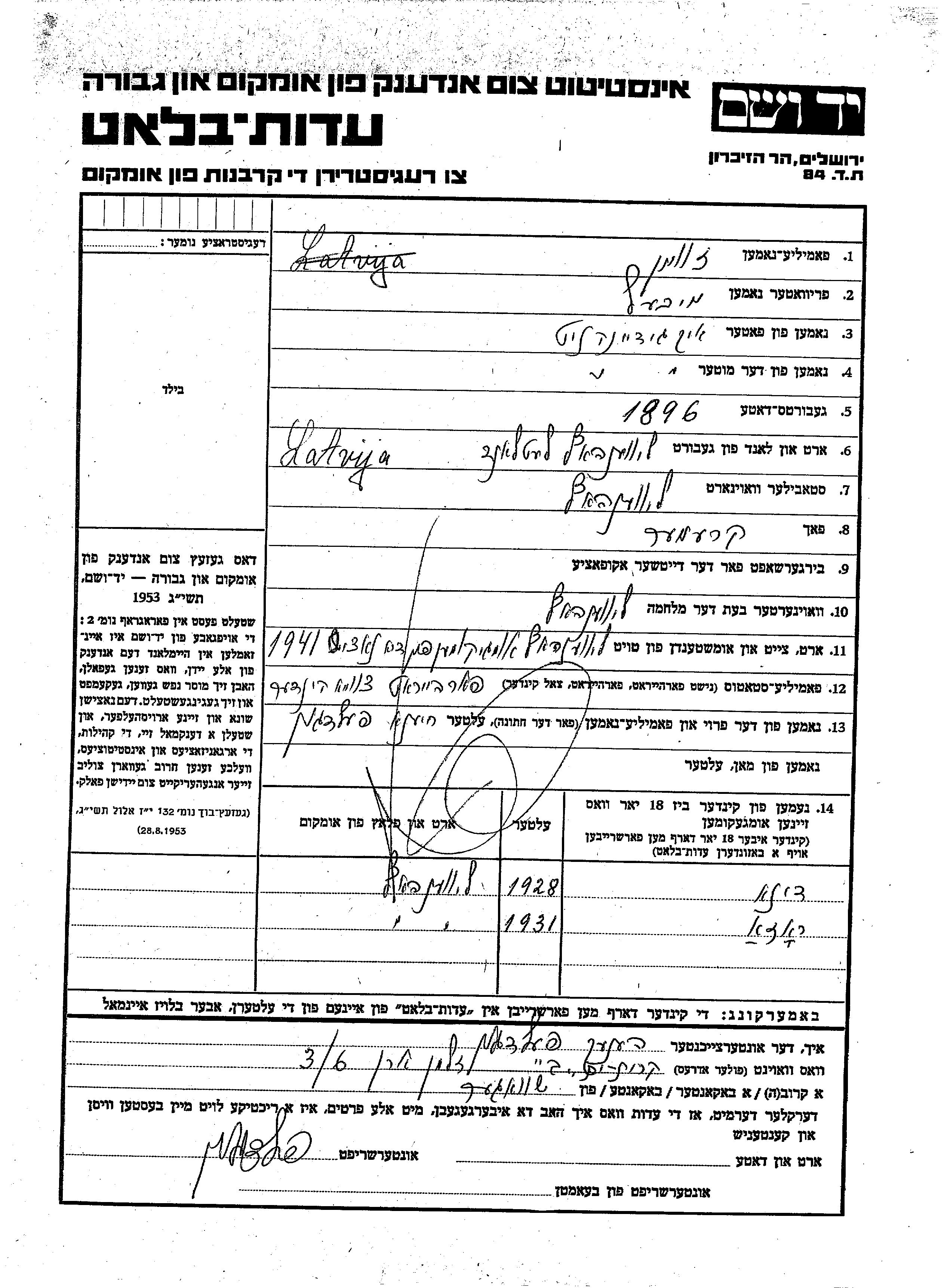 יד ושם - המפעל להנצחת השמות בדפי עד