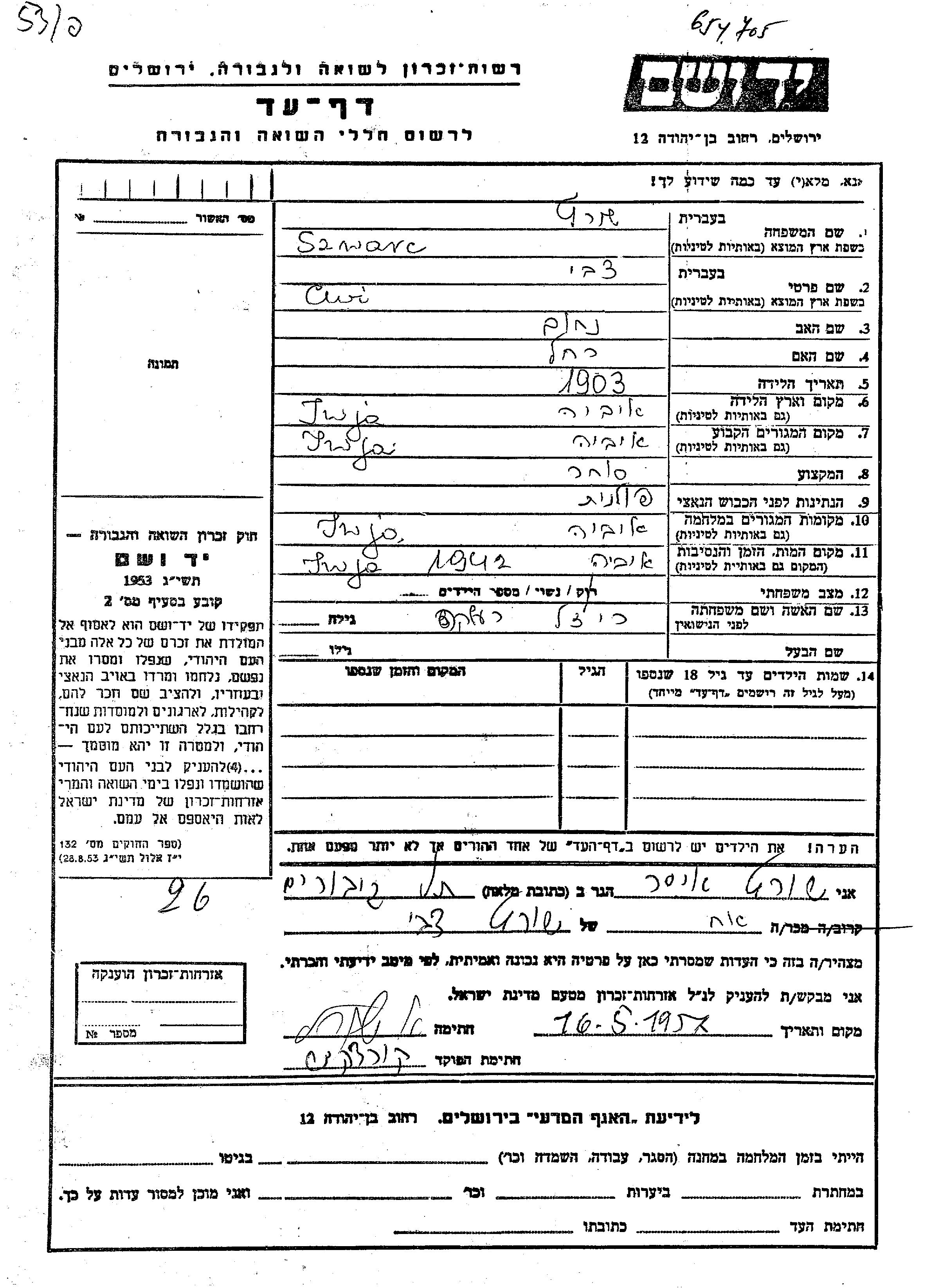 הוא נרצח בשואה. מקום המוות: Iwja שבפולין בשנת 1942.