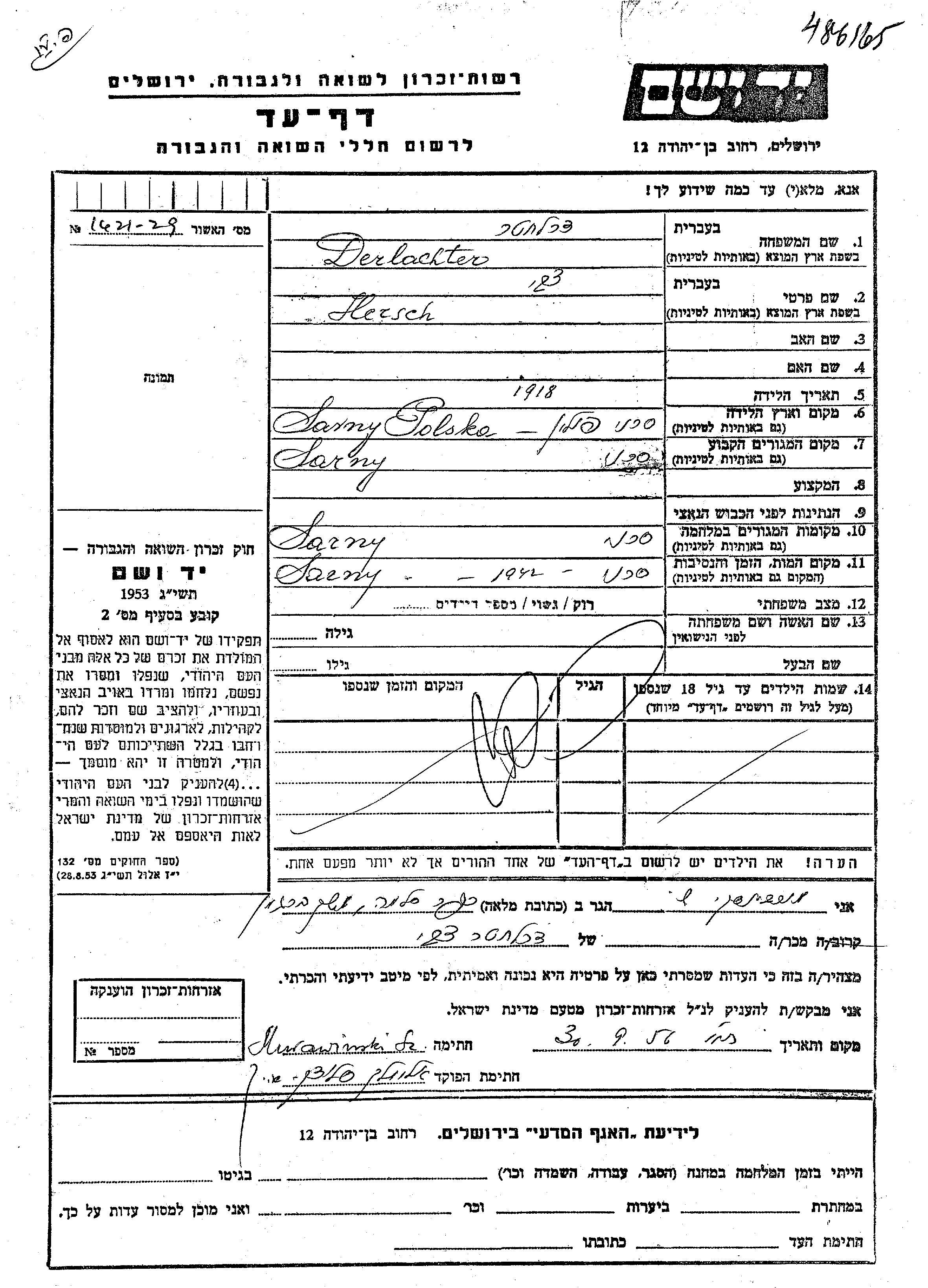 Derlachter Hersch צבי 1918 Sarny, פולין דף-עד