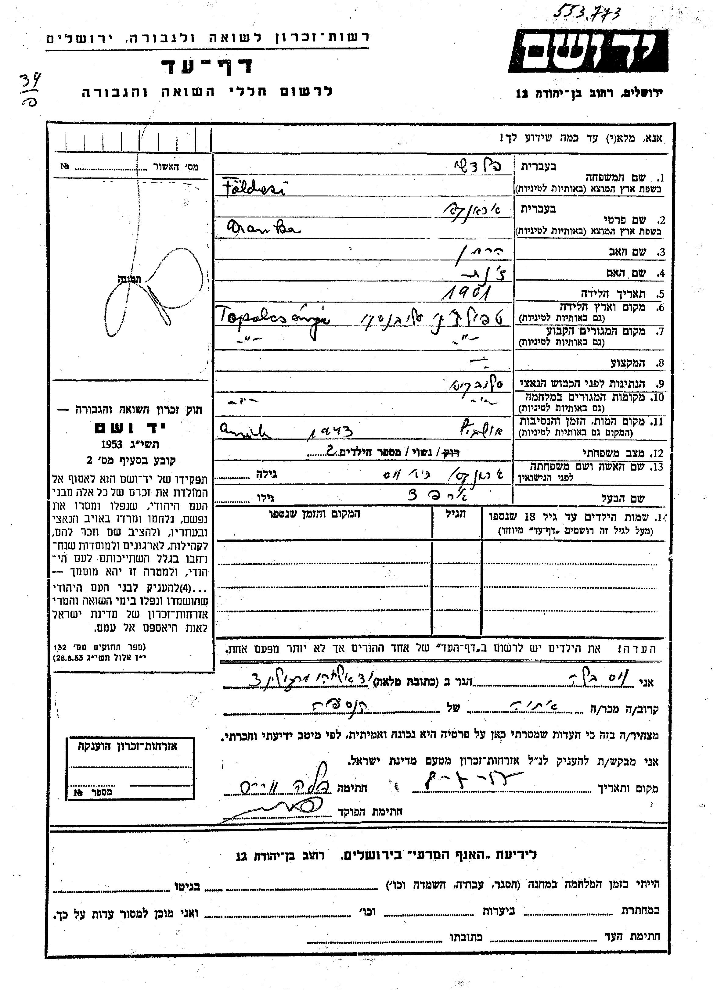 אראנקא Faldszi לבית ויס נולדה בTopolczan שבצ'כוסלובקיה בשנת 1901 להרמן וזנת. היא היתה נשואה לארפד. לפני מלחמת העולם השניה התגוררה בTopolczan שבצ'כוסלובקיה. בזמן המלחמה היא היתה בצ'כוסלובקיה. אראנקא נרצחה בשואה. מקום המוות: Auschwitz שבפולין בשנת 1943.