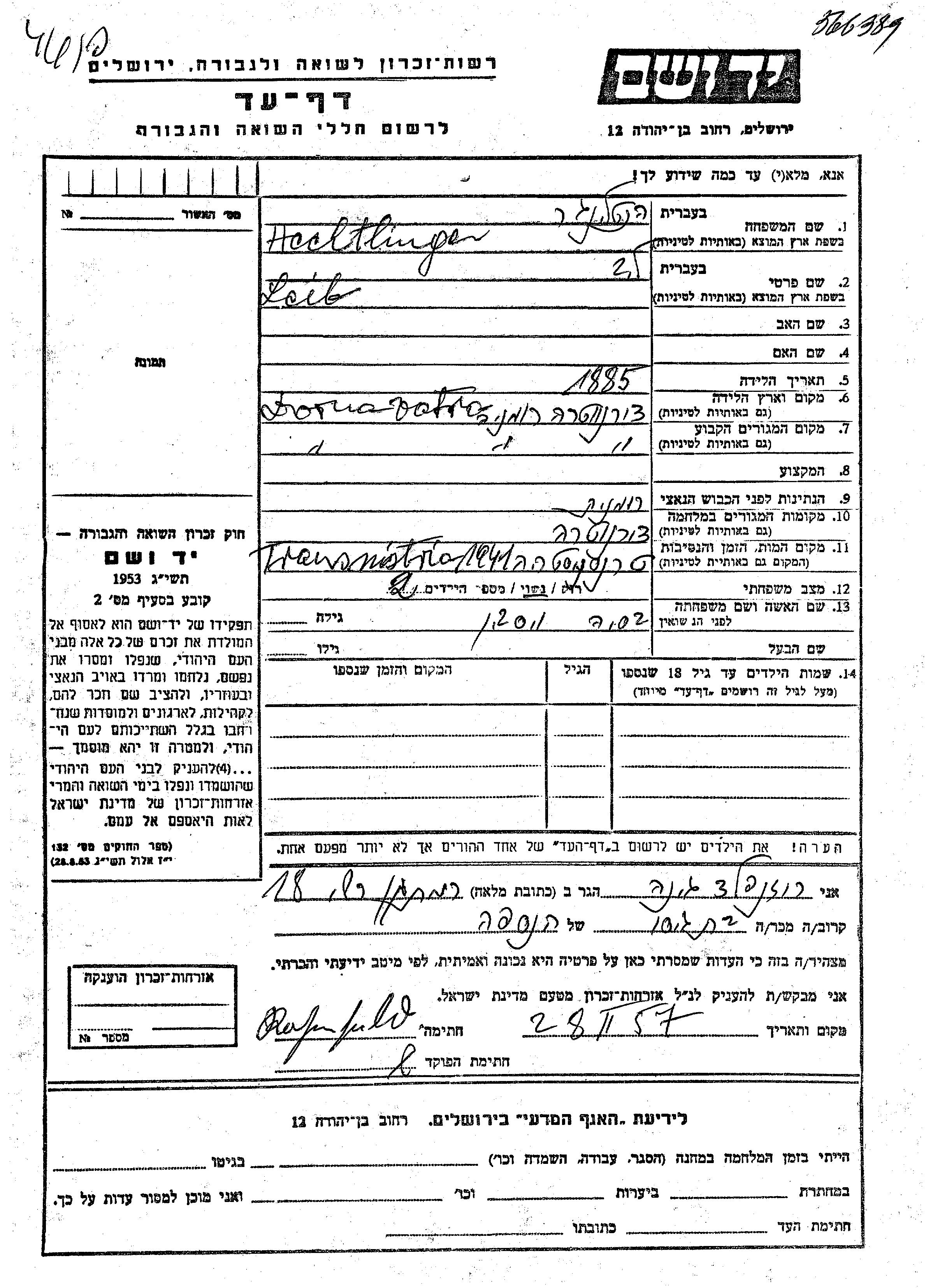 יד ושם - המפעל להנצחת השמות בדפי עד