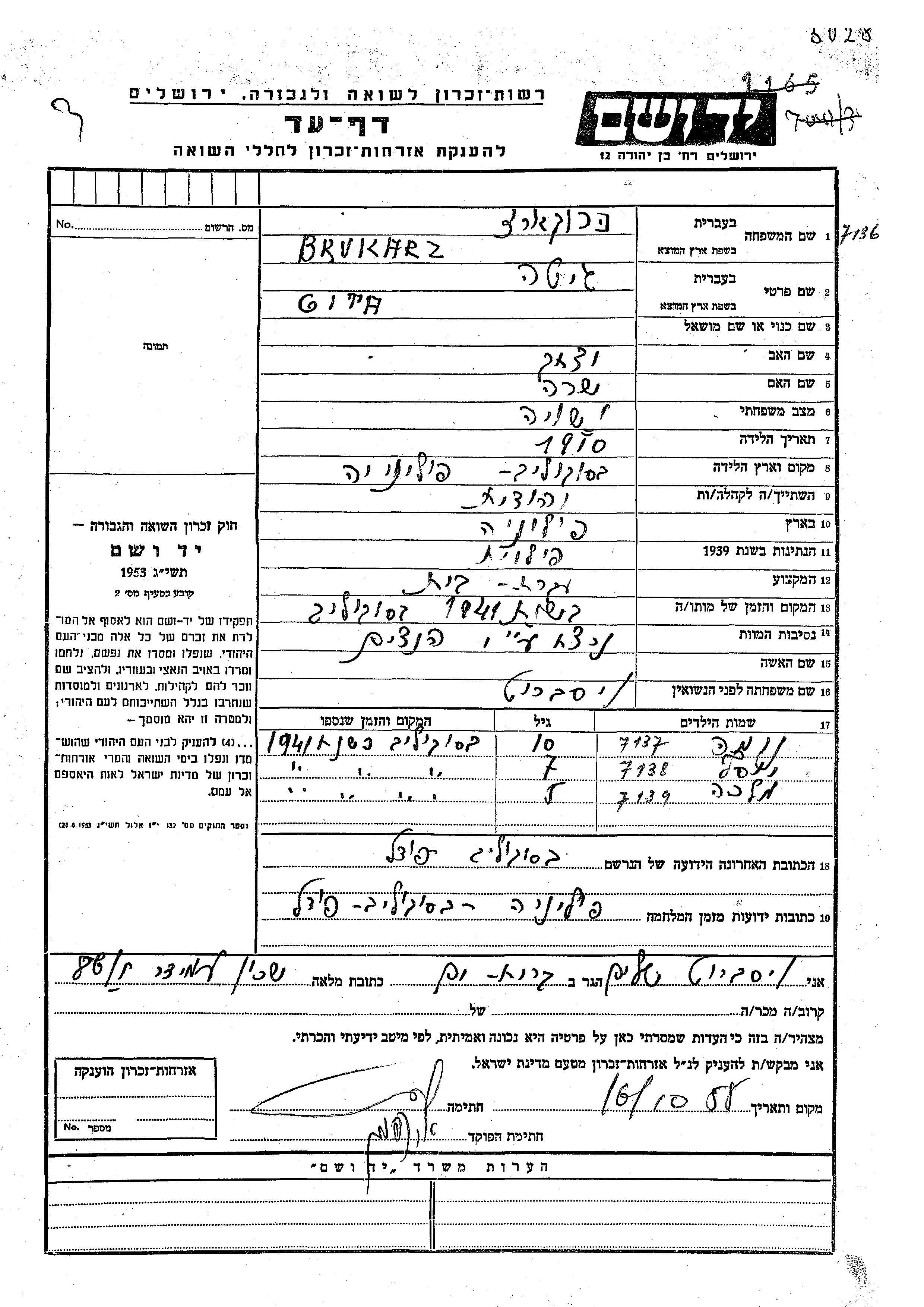 יד ושם - המפעל להנצחת השמות בדפי עד