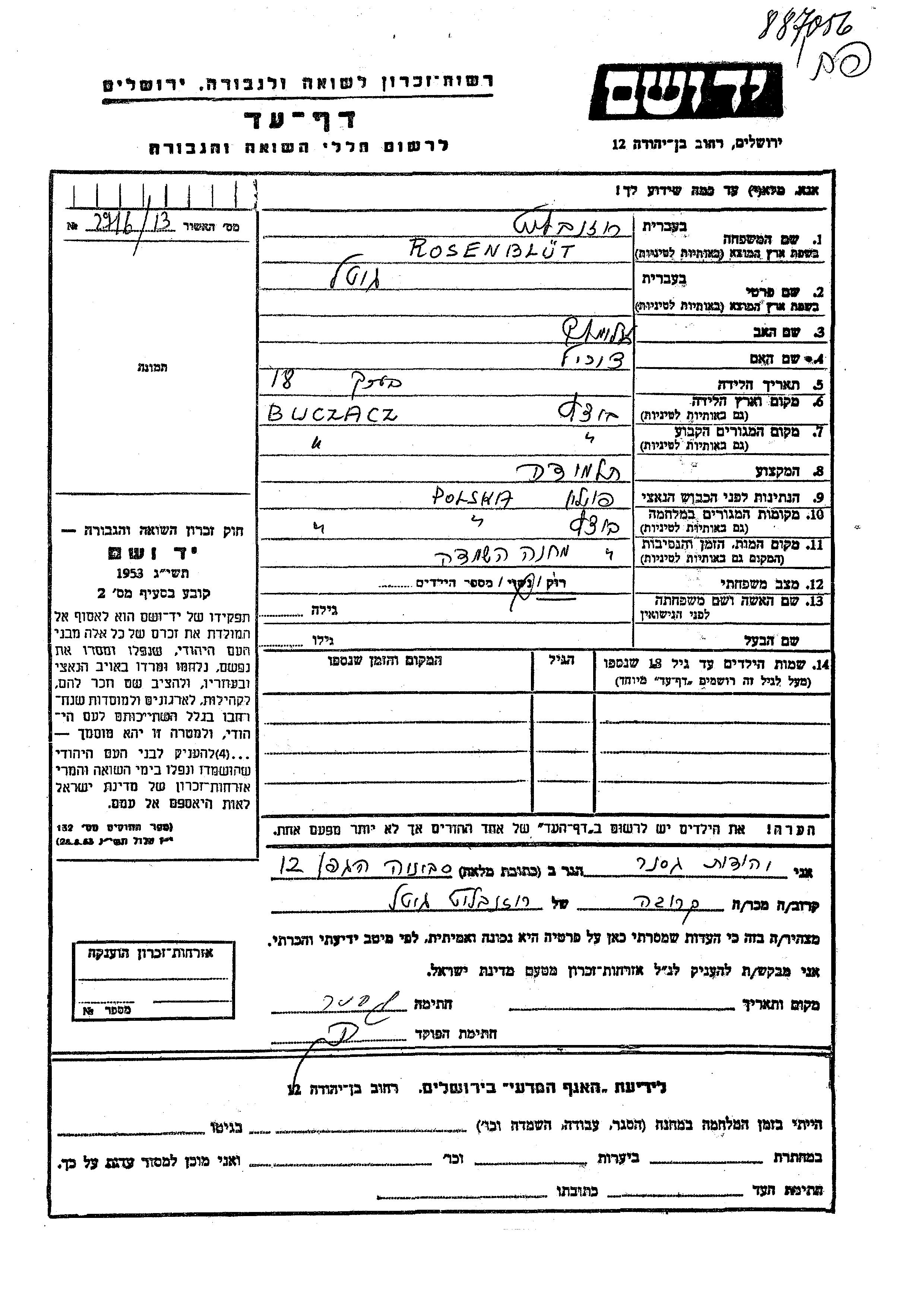 רוזנבלוט רוזנבלט גיטל Buczacz, פולין דף-עד