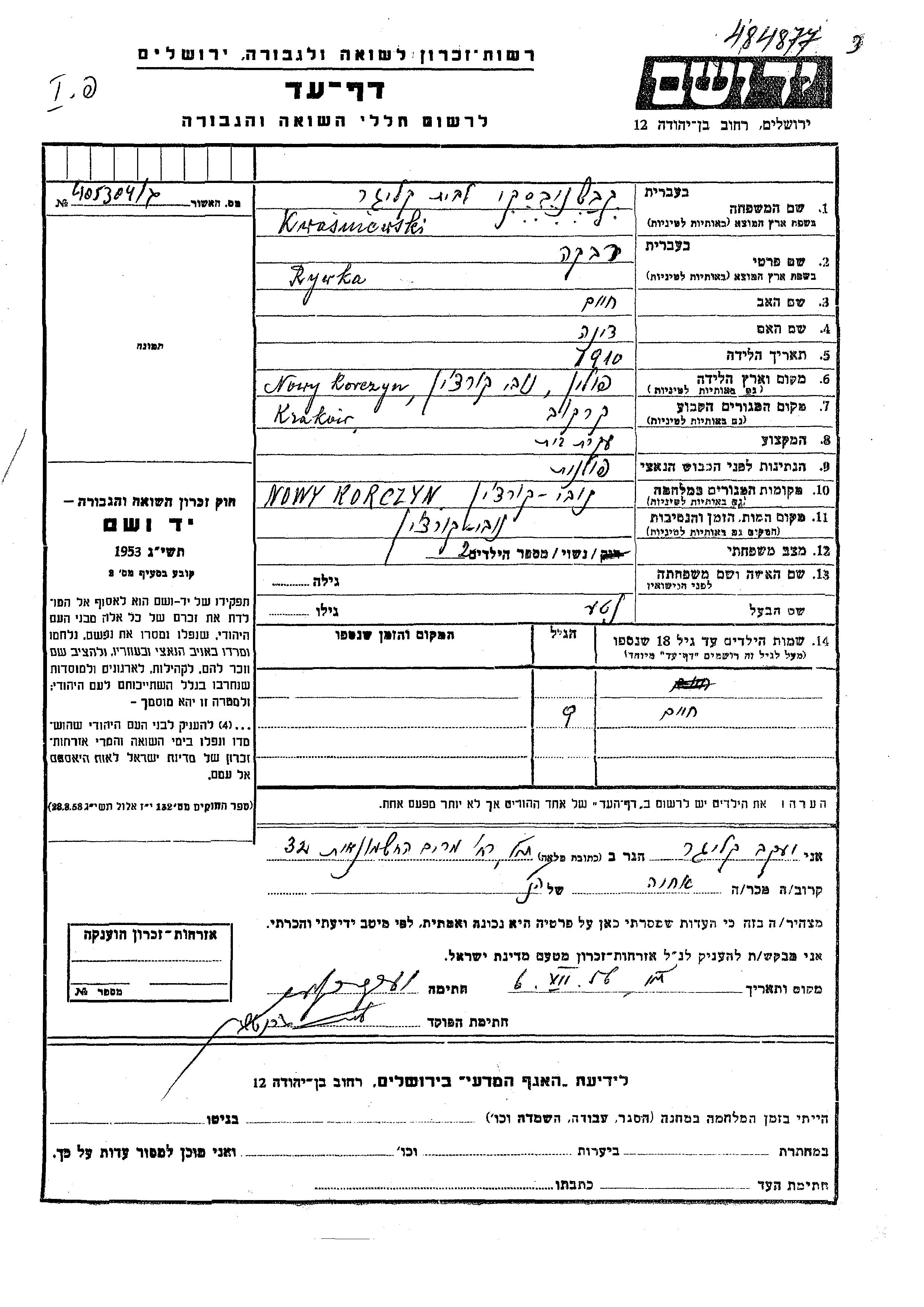 יד ושם - המפעל להנצחת השמות בדפי עד