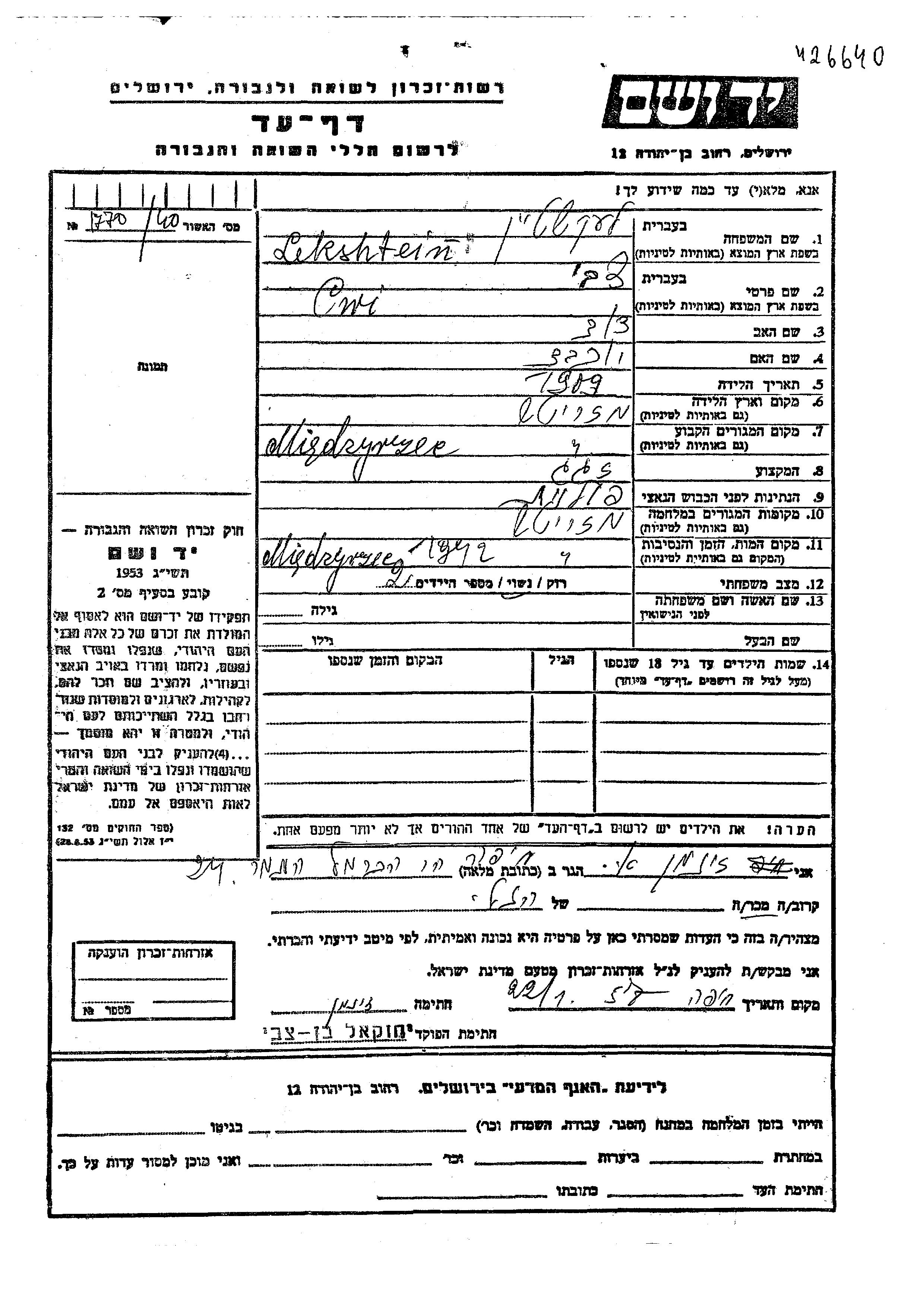 Lekshtein Cwi 1909 Miedzyrzec, פולין דף-עד