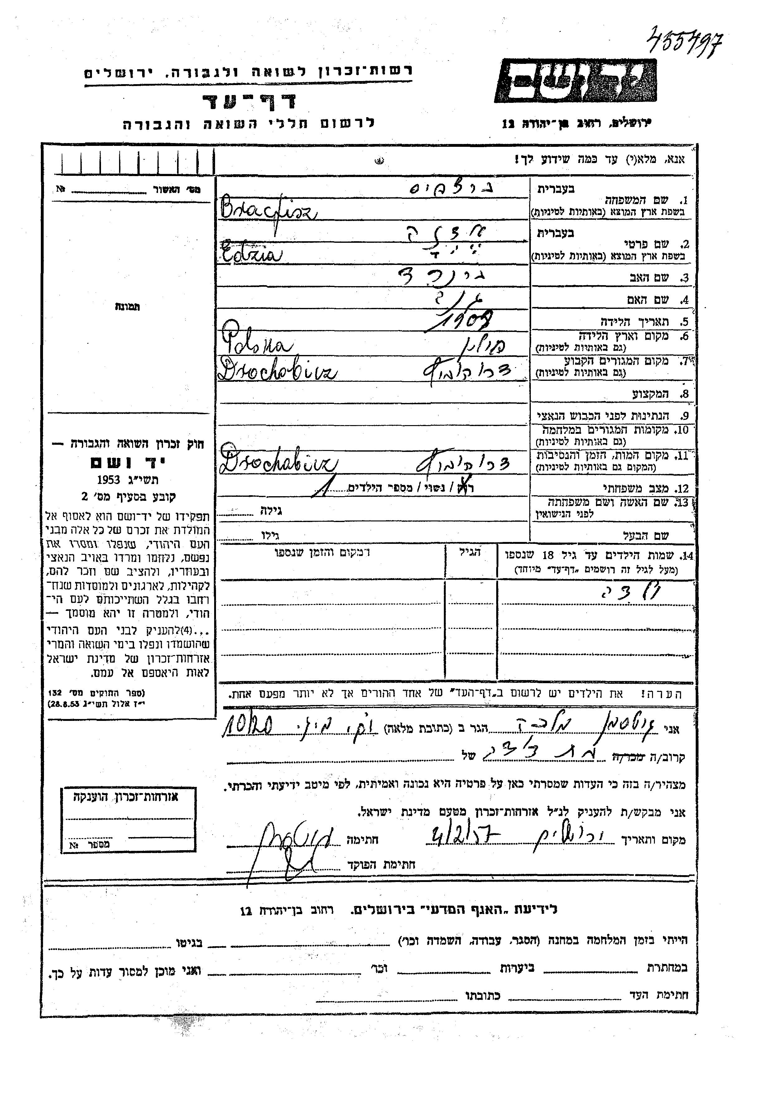 יד ושם - המפעל להנצחת השמות בדפי עד