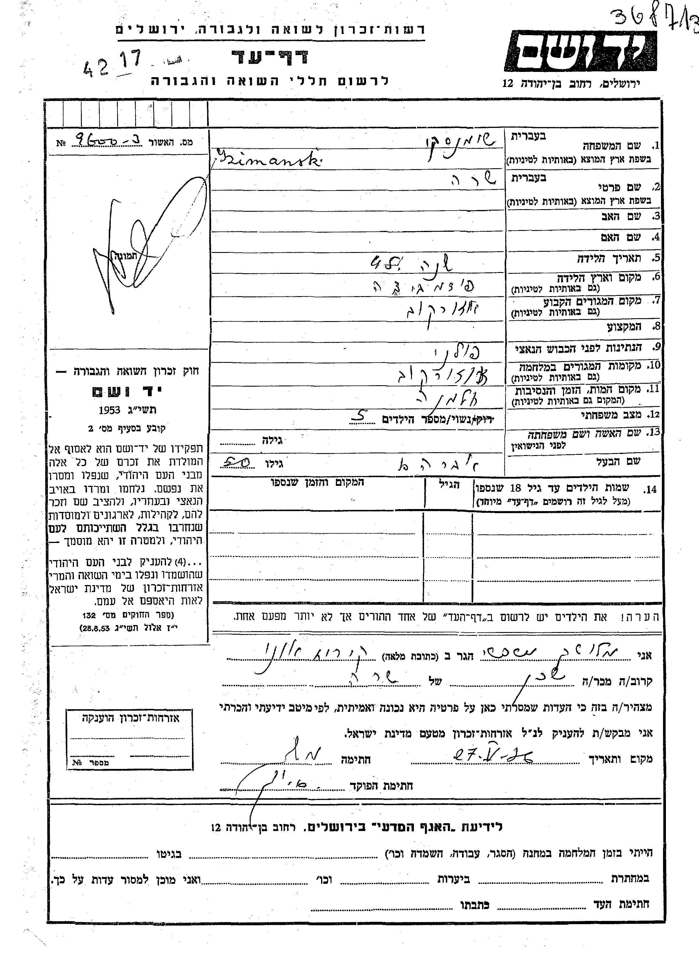 שרה Szimanski נולדה בPodebice שבפולין. היא היתה נשואה לאברהם. לפני מלחמת העולם השניה התגוררה בOzorkow שבפולין. בזמן המלחמה היא היתה בOzorkow שבפולין. שרה נרצחה בשואה.