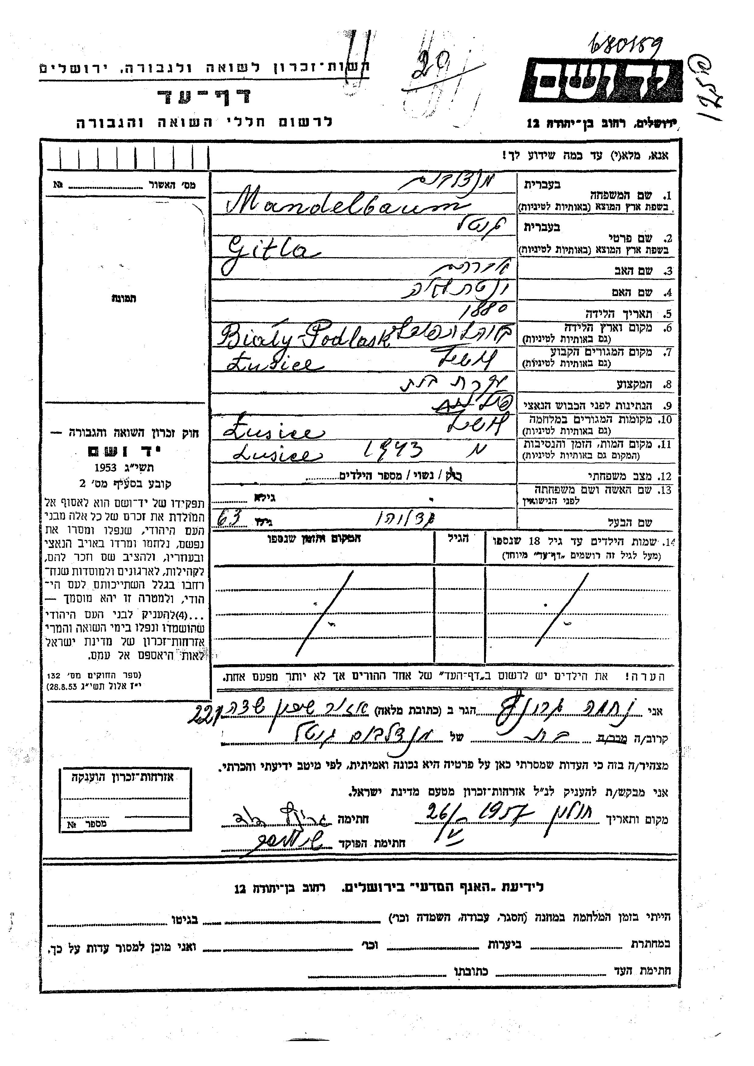 מנדלבאום Gitta 1880 Lusice, פולין דף-עד