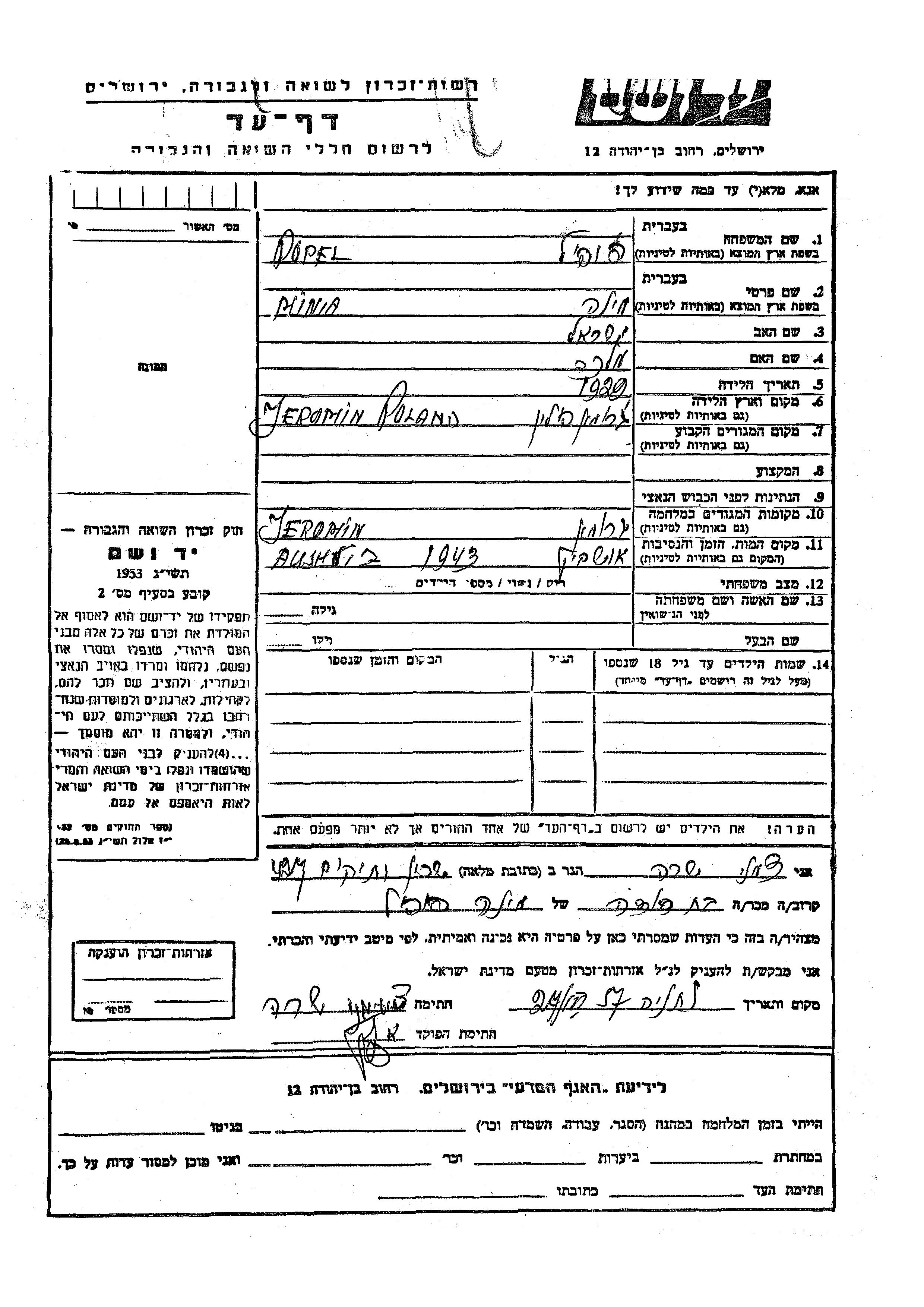 יד ושם - המפעל להנצחת השמות בדפי עד