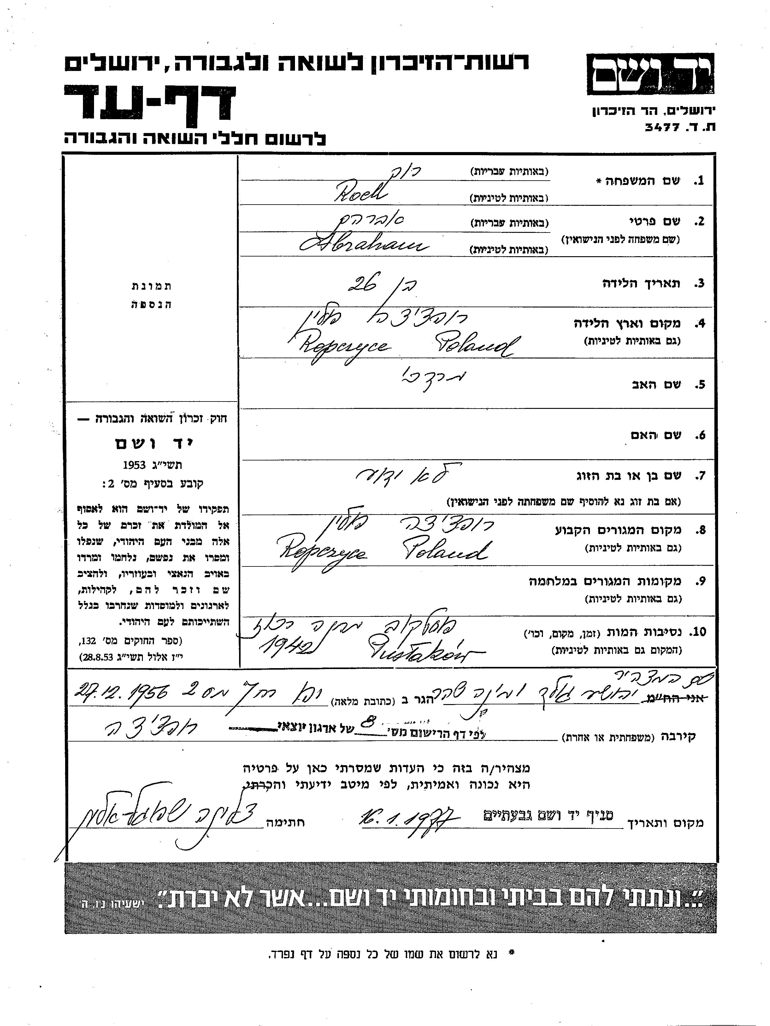 עיר/כפר, גטו/מחנה או אתר רצח או מחוז/אזור או מדינה. שם מקום ניתן לחפש רק בא-ב לטיני.