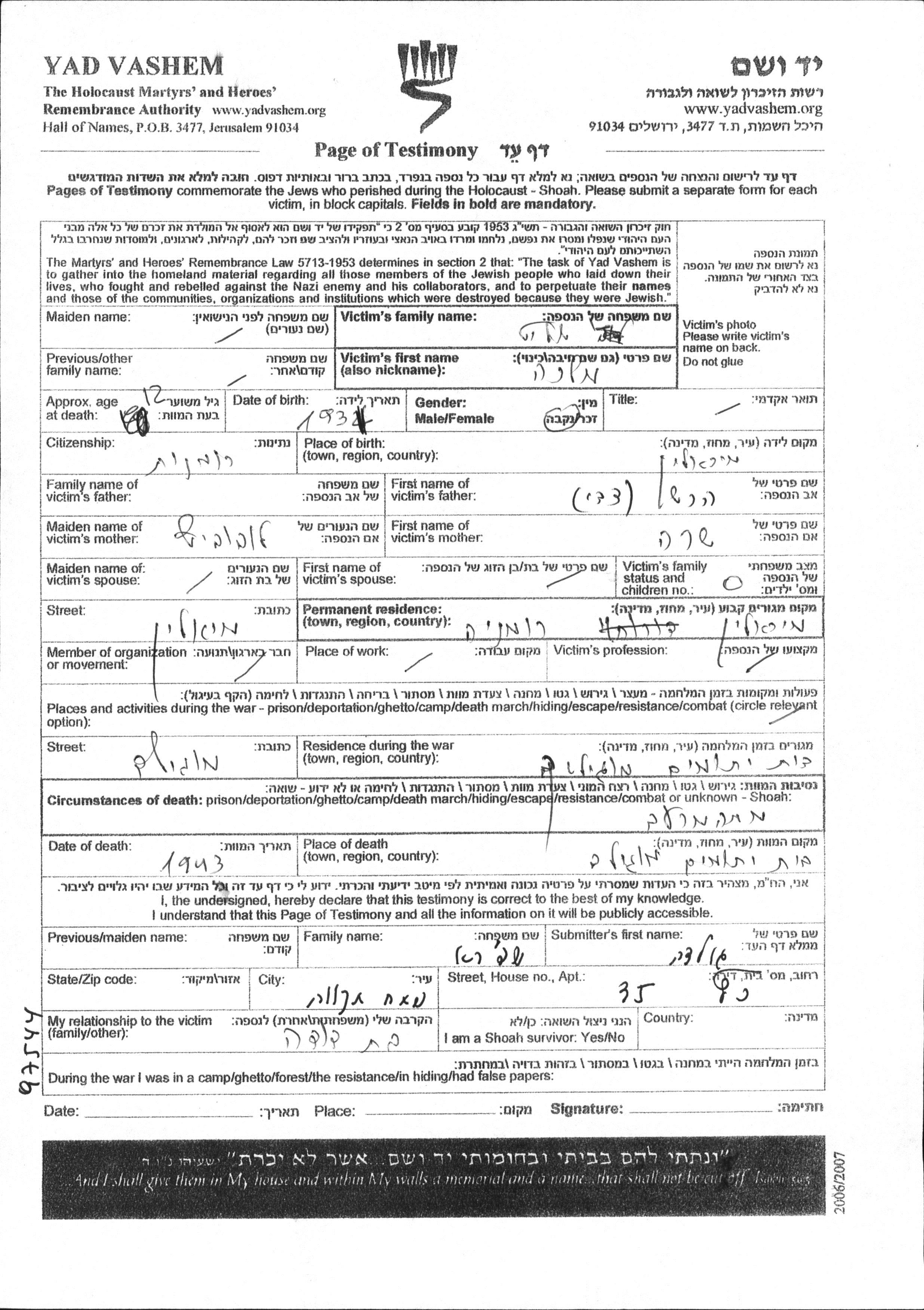 עיר/כפר, גטו/מחנה או אתר רצח או מחוז/אזור או מדינה. שם מקום ניתן לחפש רק בא-ב לטיני.