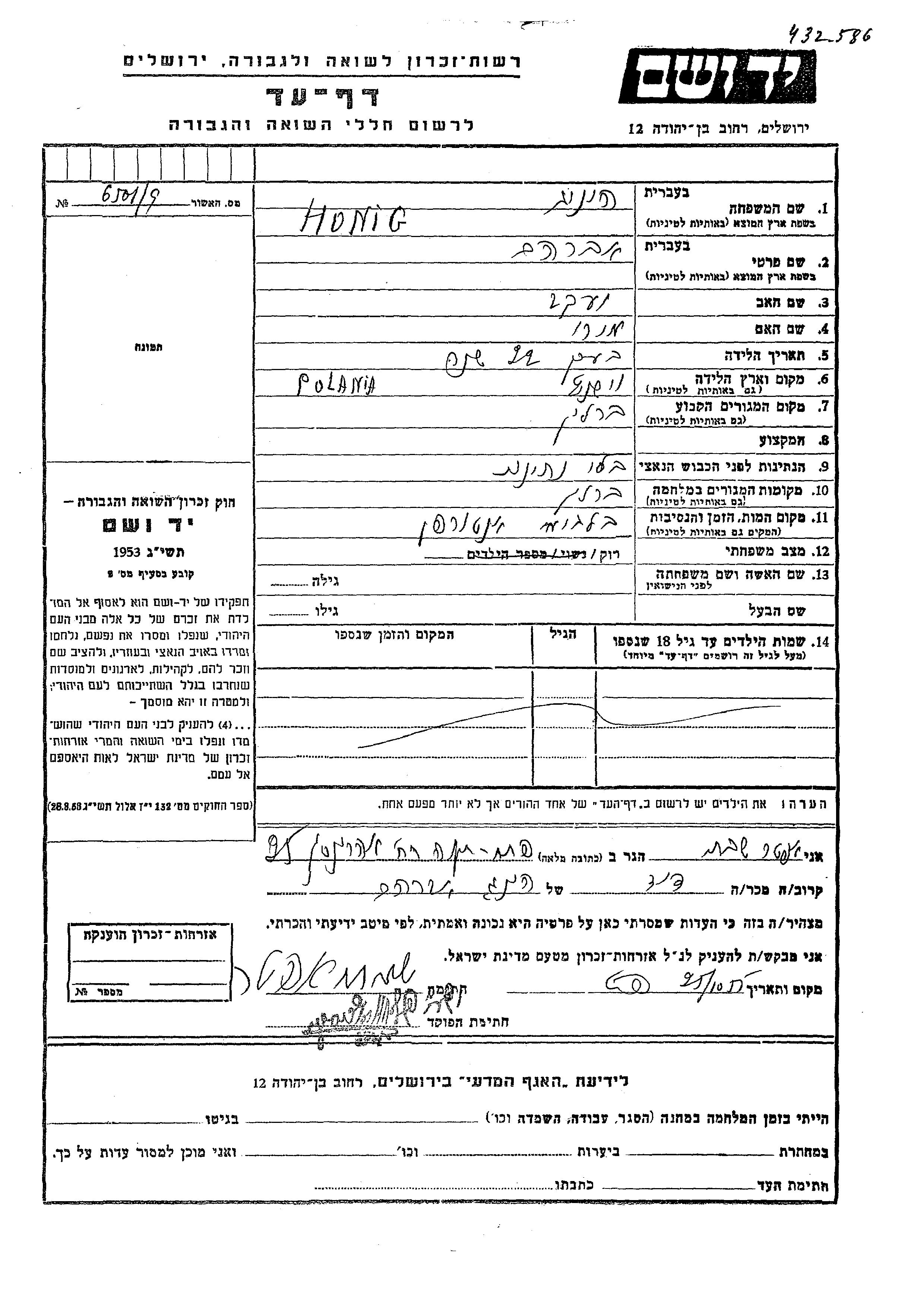 יד ושם - המפעל להנצחת השמות בדפי עד