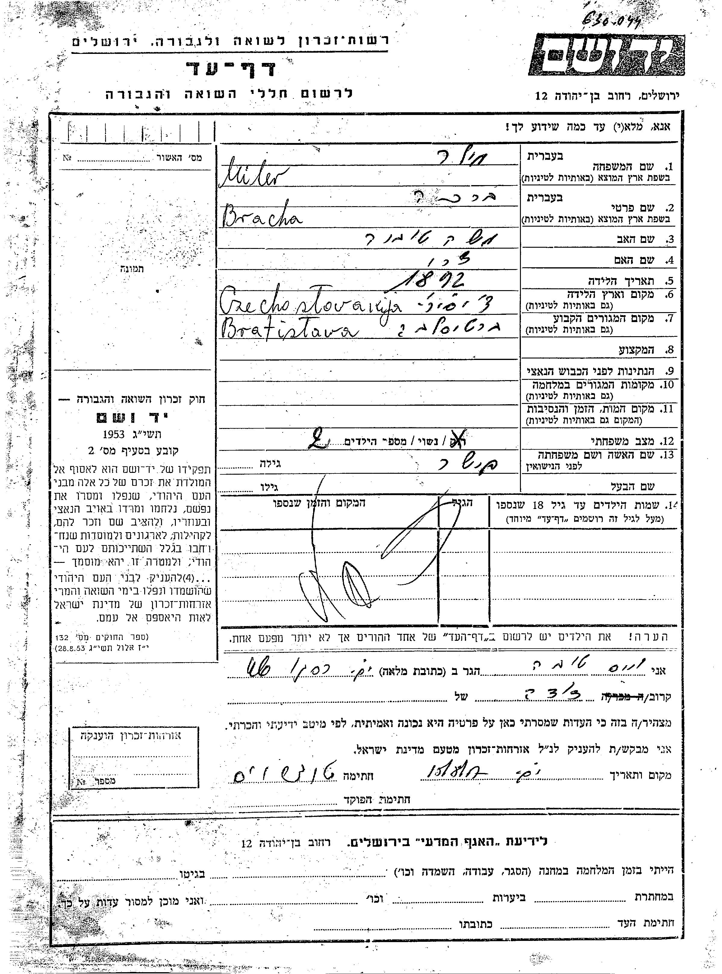 מילר Bracha 1892 Bratislava, צ'כוסלובקיה דף-עד
