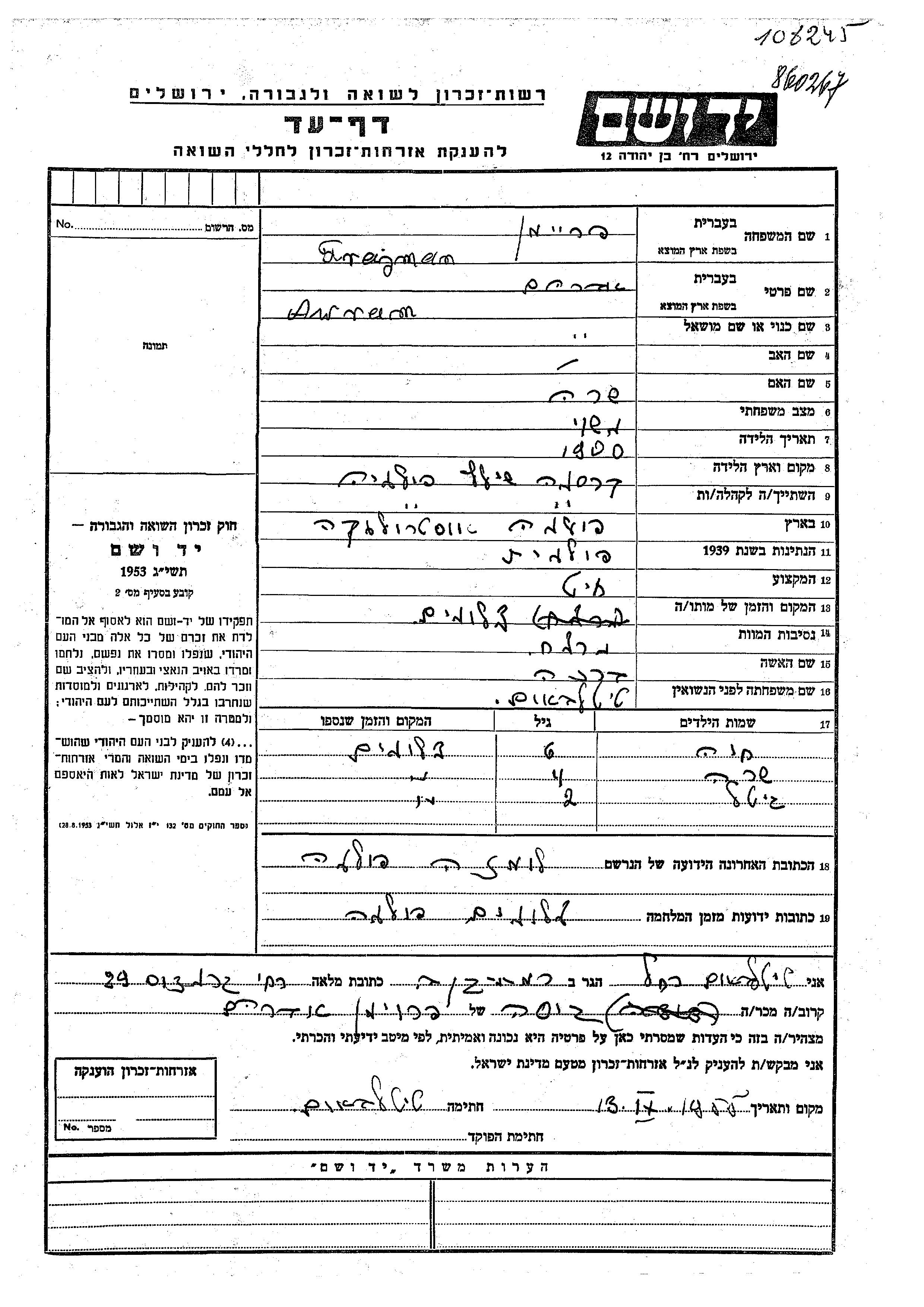 יד ושם - המפעל להנצחת השמות בדפי עד