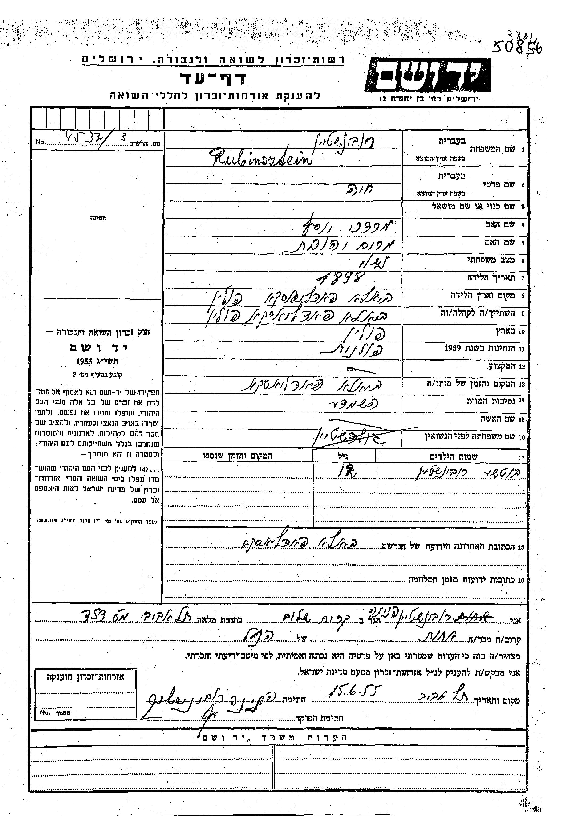 חיפוש שם מוסר דף העד. חיפוש לפי כל שם פרטי, כולל כינוי או שם חיבה