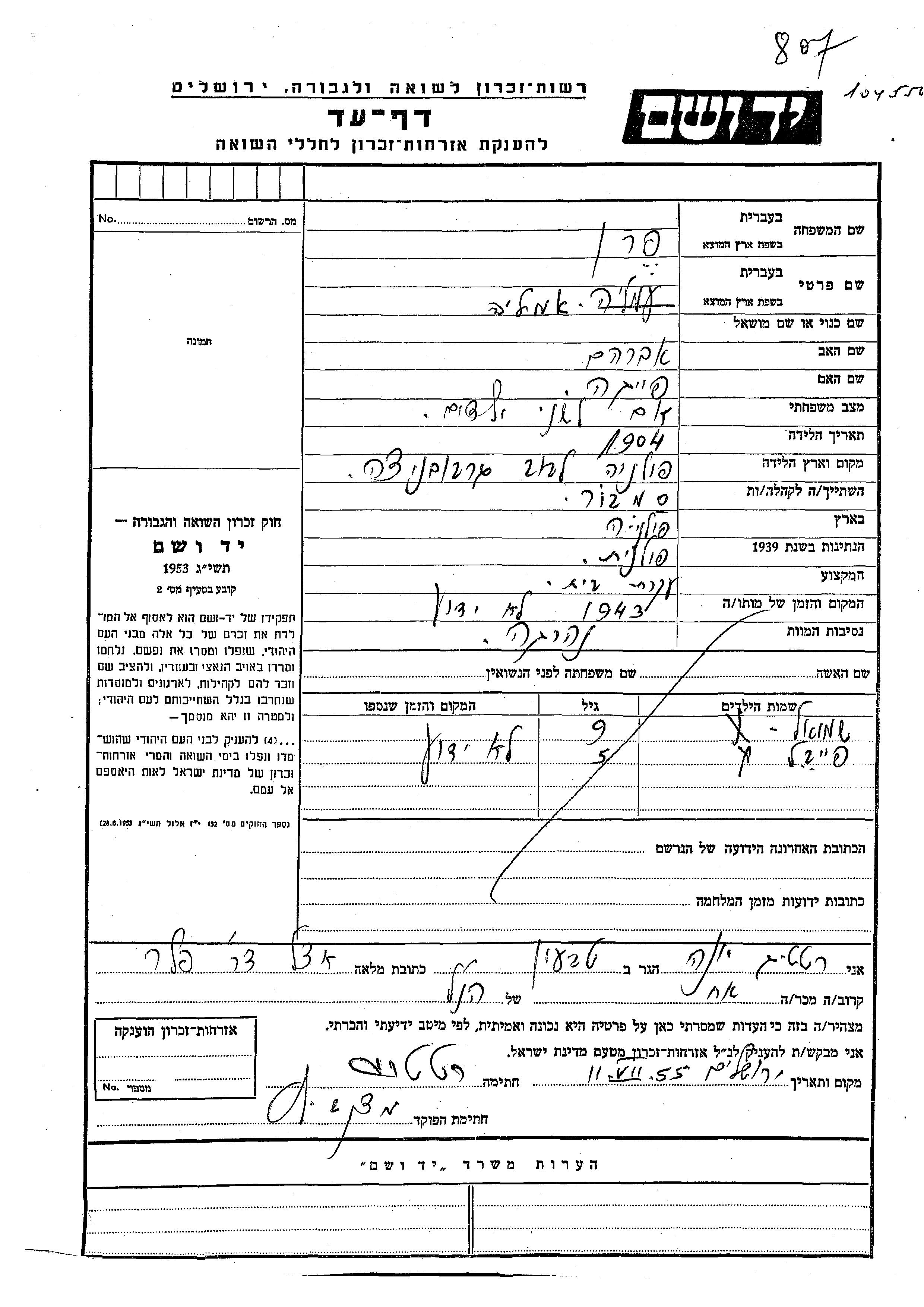 יד ושם - המפעל להנצחת השמות בדפי עד