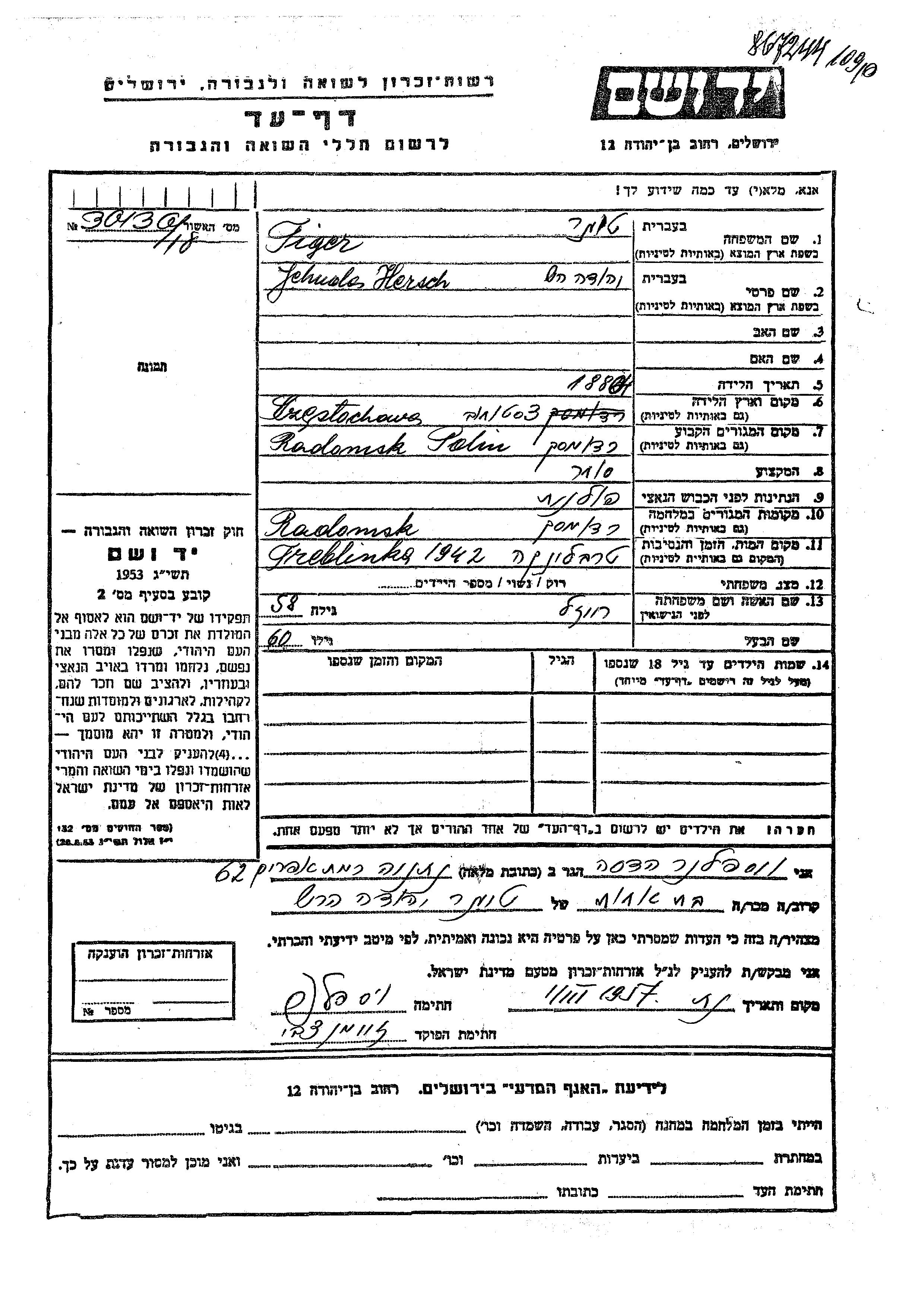 חיפוש שם מוסר דף העד. חיפוש לפי כל שם פרטי, כולל כינוי או שם חיבה