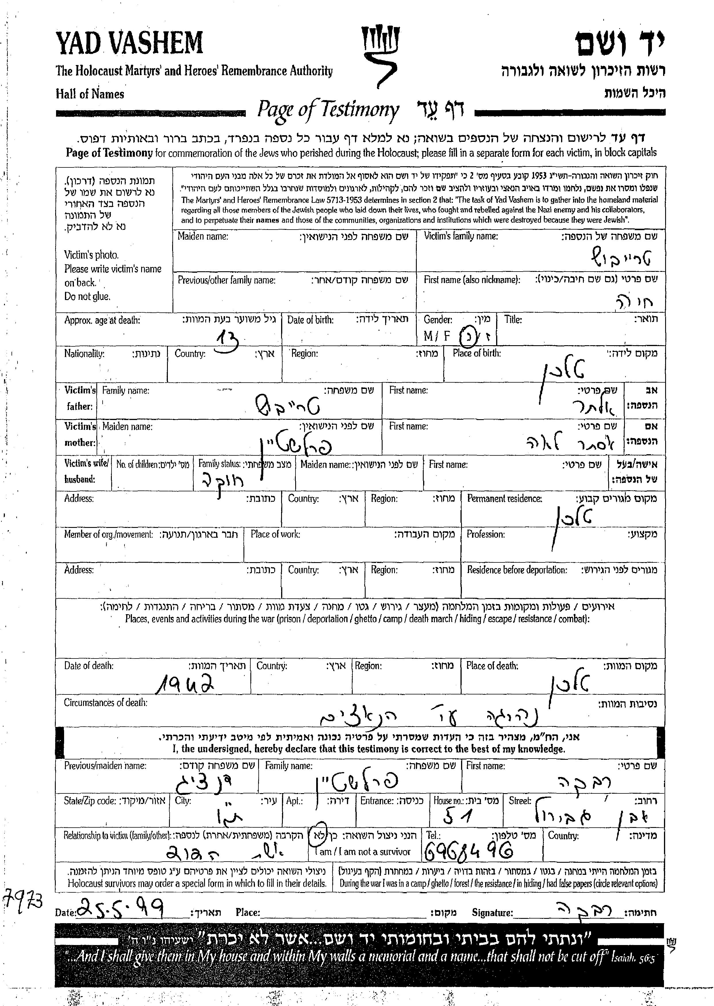 יד ושם - המפעל להנצחת השמות בדפי עד