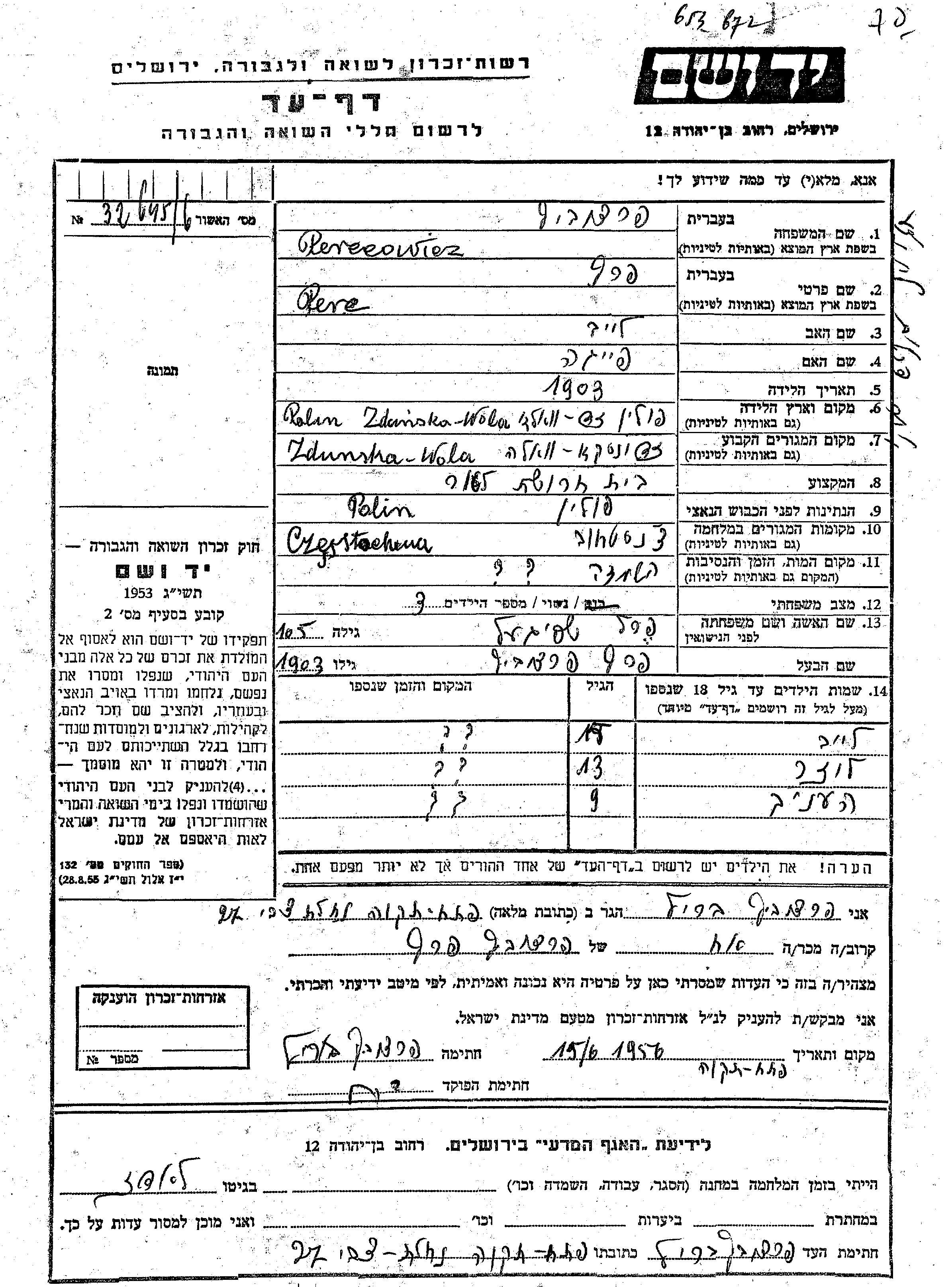 חיפוש שם מוסר דף העד. חיפוש לפי כל שם פרטי, כולל כינוי או שם חיבה