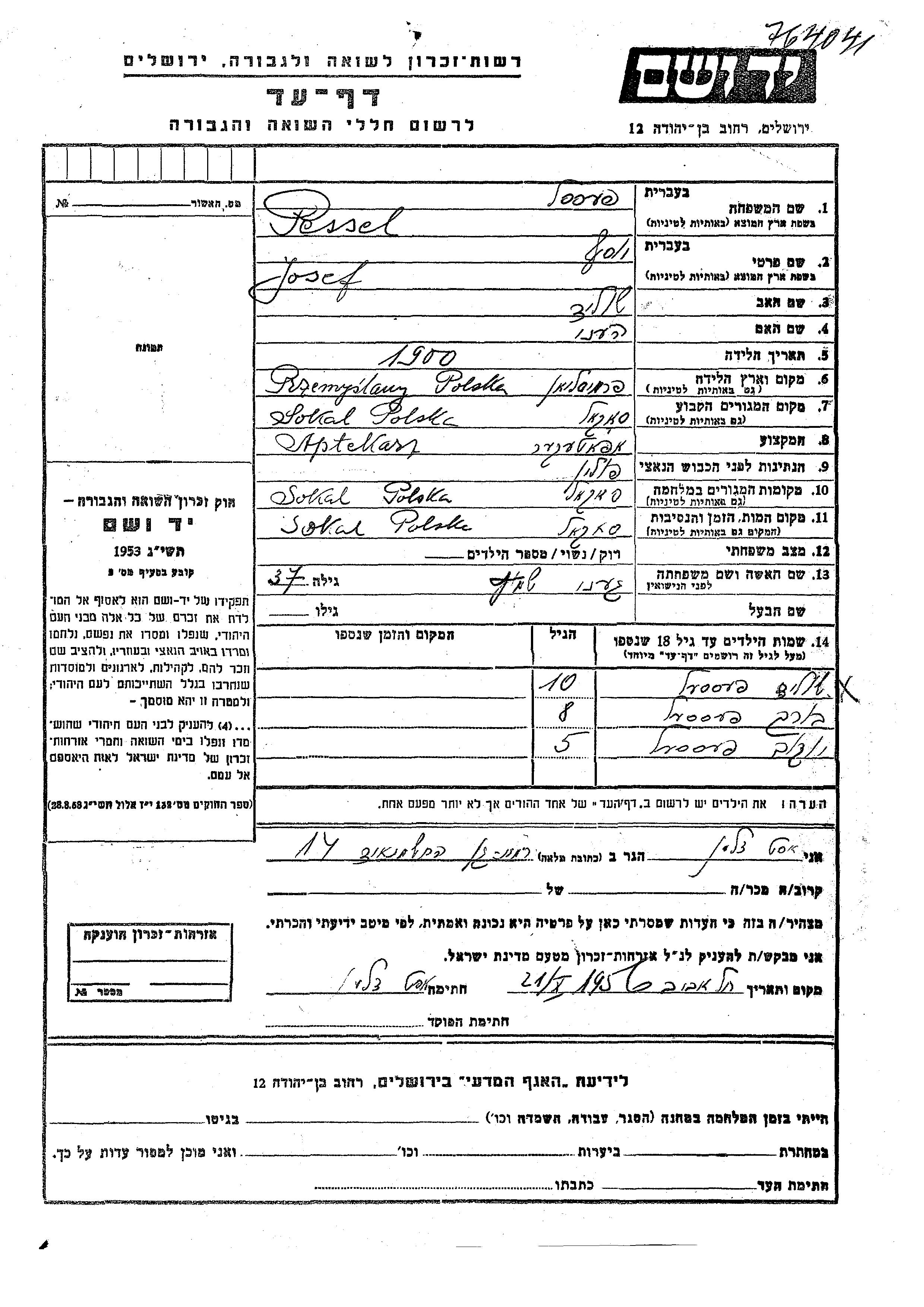 חיפוש שם מוסר דף העד. חיפוש לפי כל שם פרטי, כולל כינוי או שם חיבה