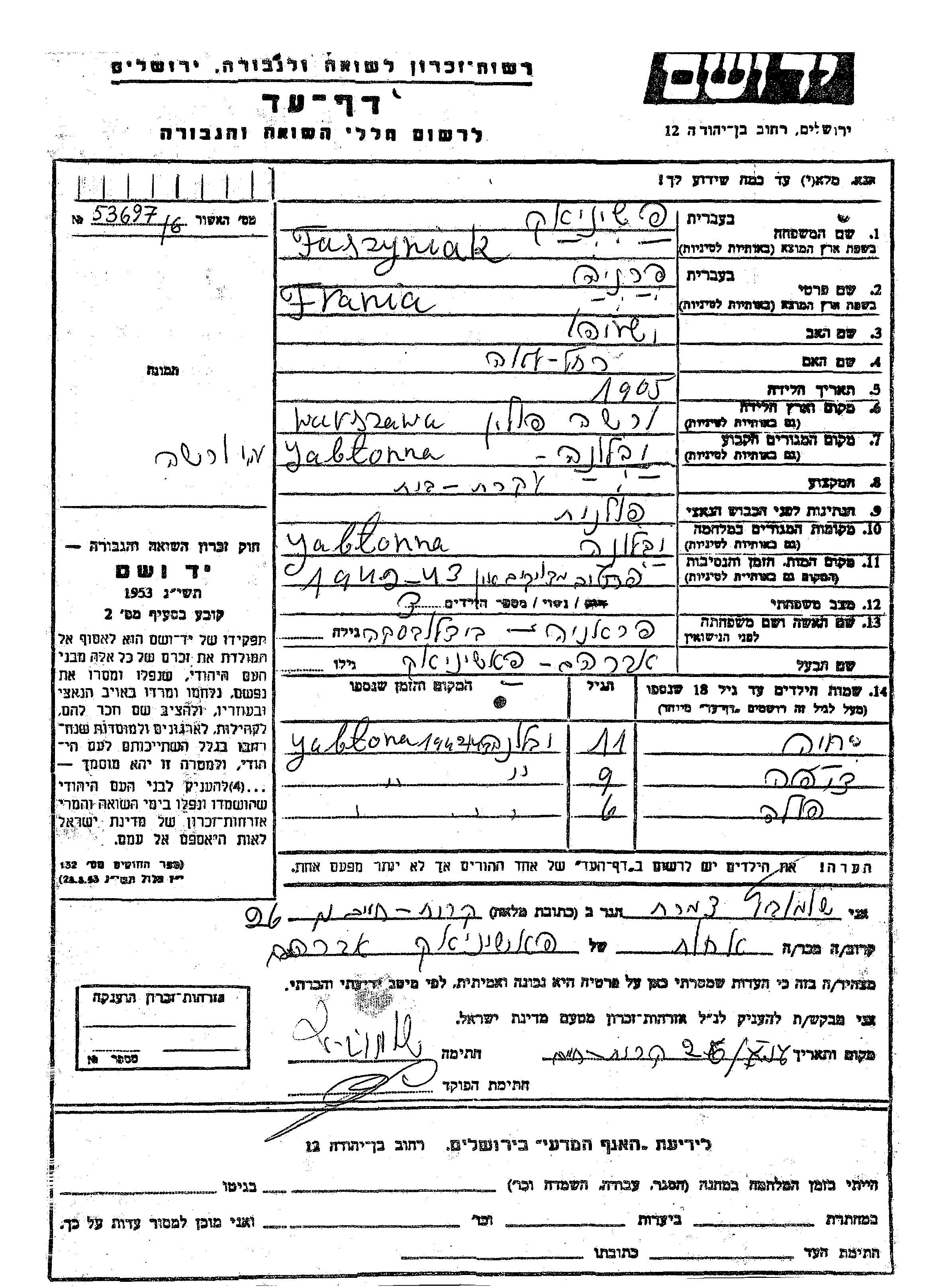 יד ושם - המפעל להנצחת השמות בדפי עד