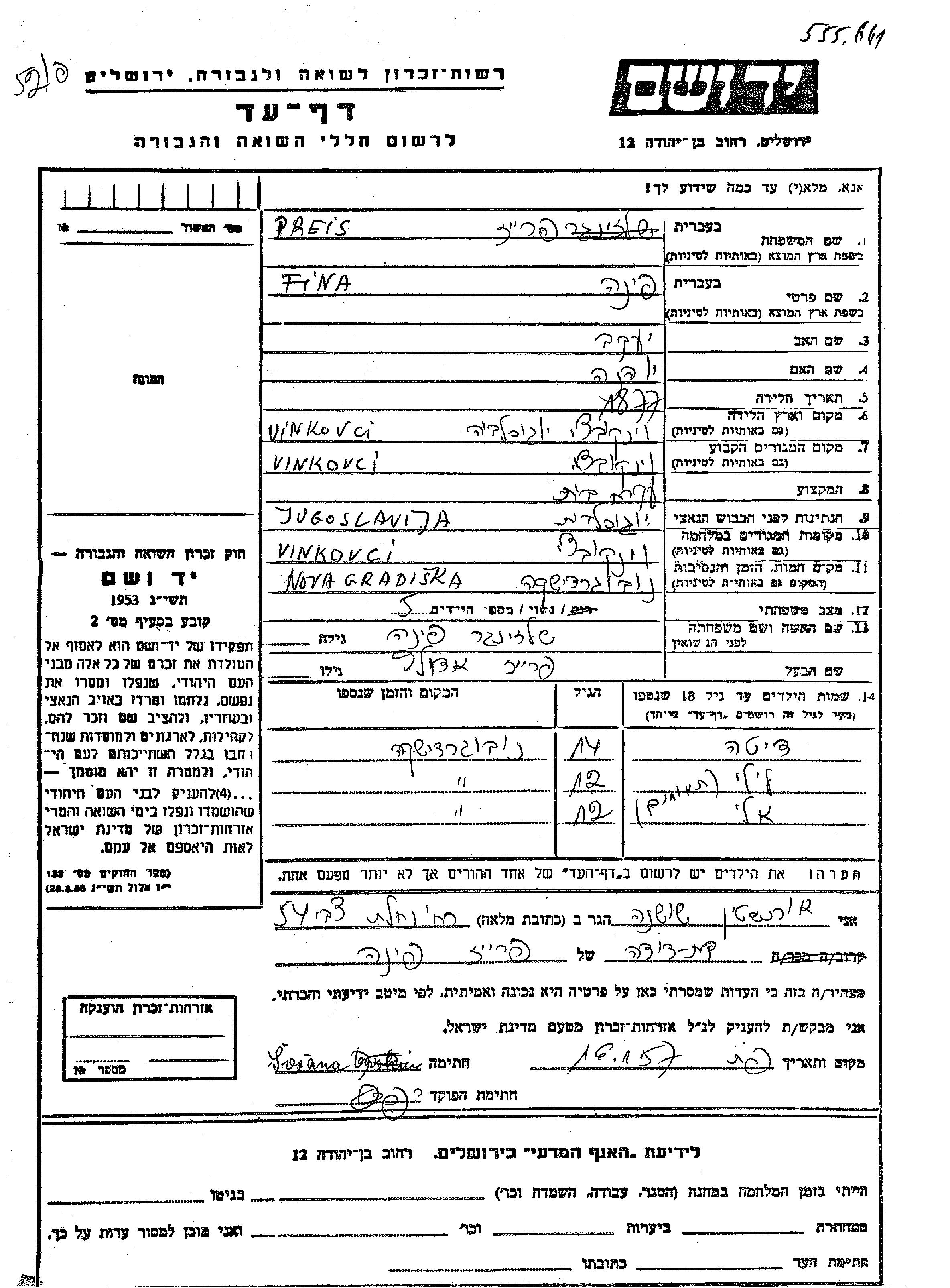 יד ושם - המפעל להנצחת השמות בדפי עד