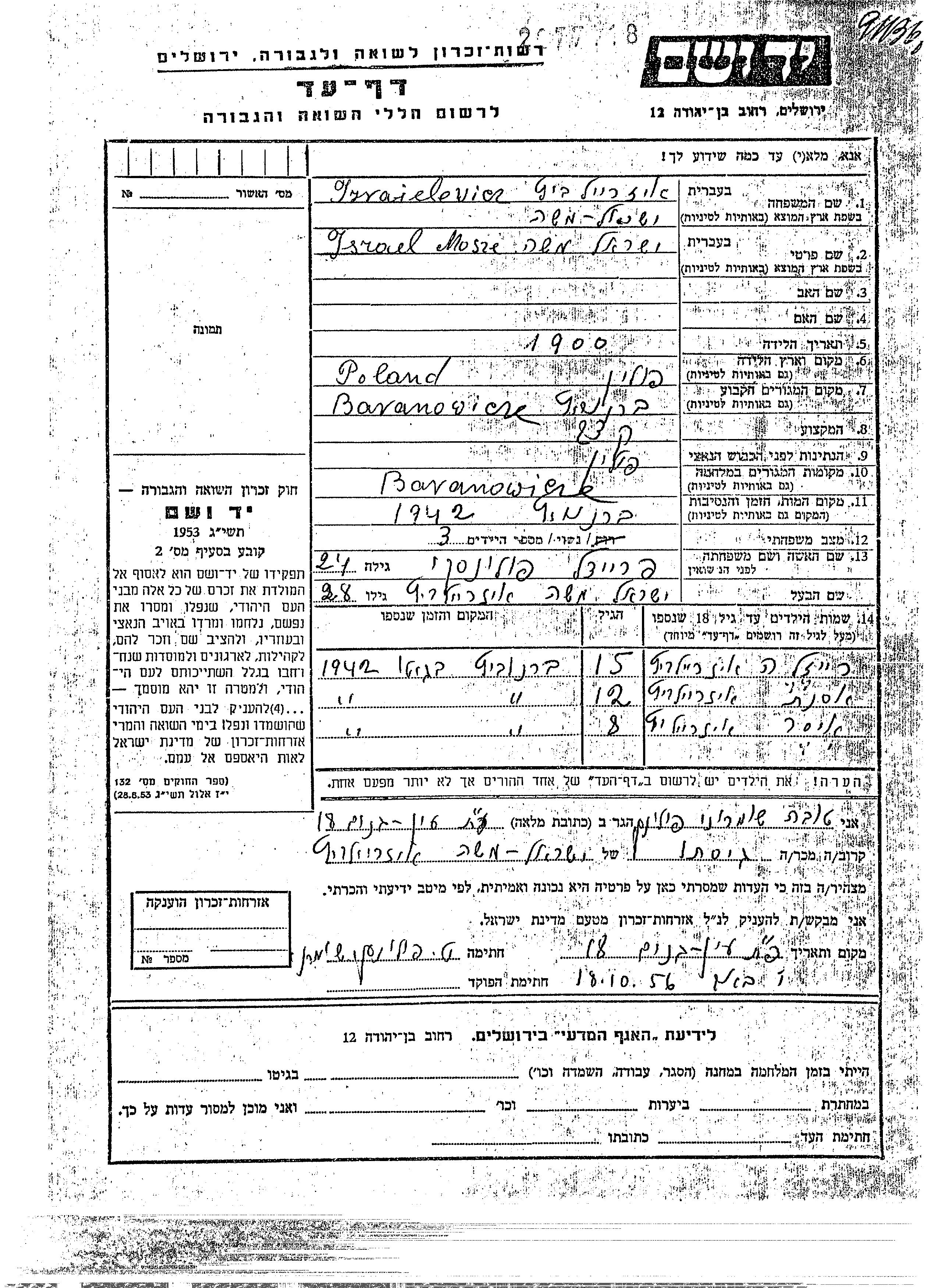 Izraielewicz אסנת Baranowicz, פולין דף-עד