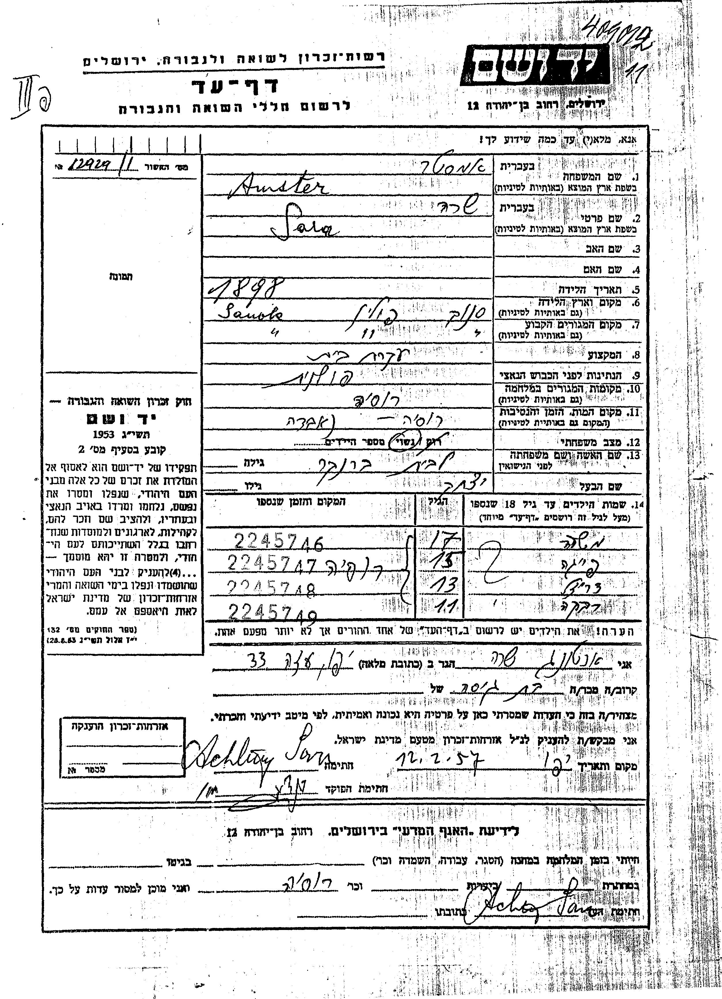 משה אמסטר נולד לאיסק ושרה לבית ברנקר. הוא היה ילד. לפני מלחמת העולם השניה התגורר בSanok שבפולין. בזמן המלחמה הוא היה ברוסיה (ברה"מ) שברוסיה (ברה"מ). משה נרצח בשואה.