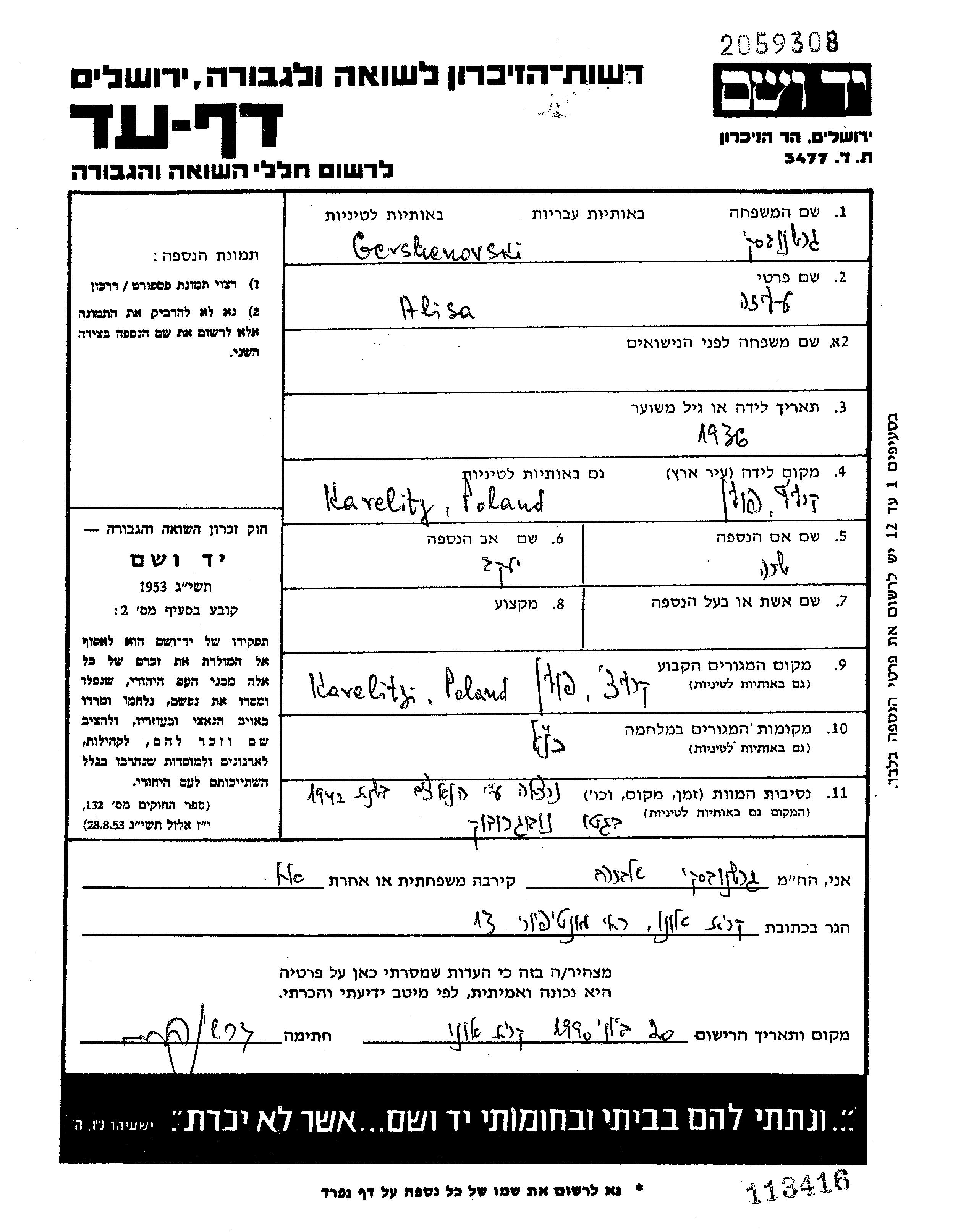 גרשנובסקי אליזה אליסה 1936 Korelitz, פולין דף-עד