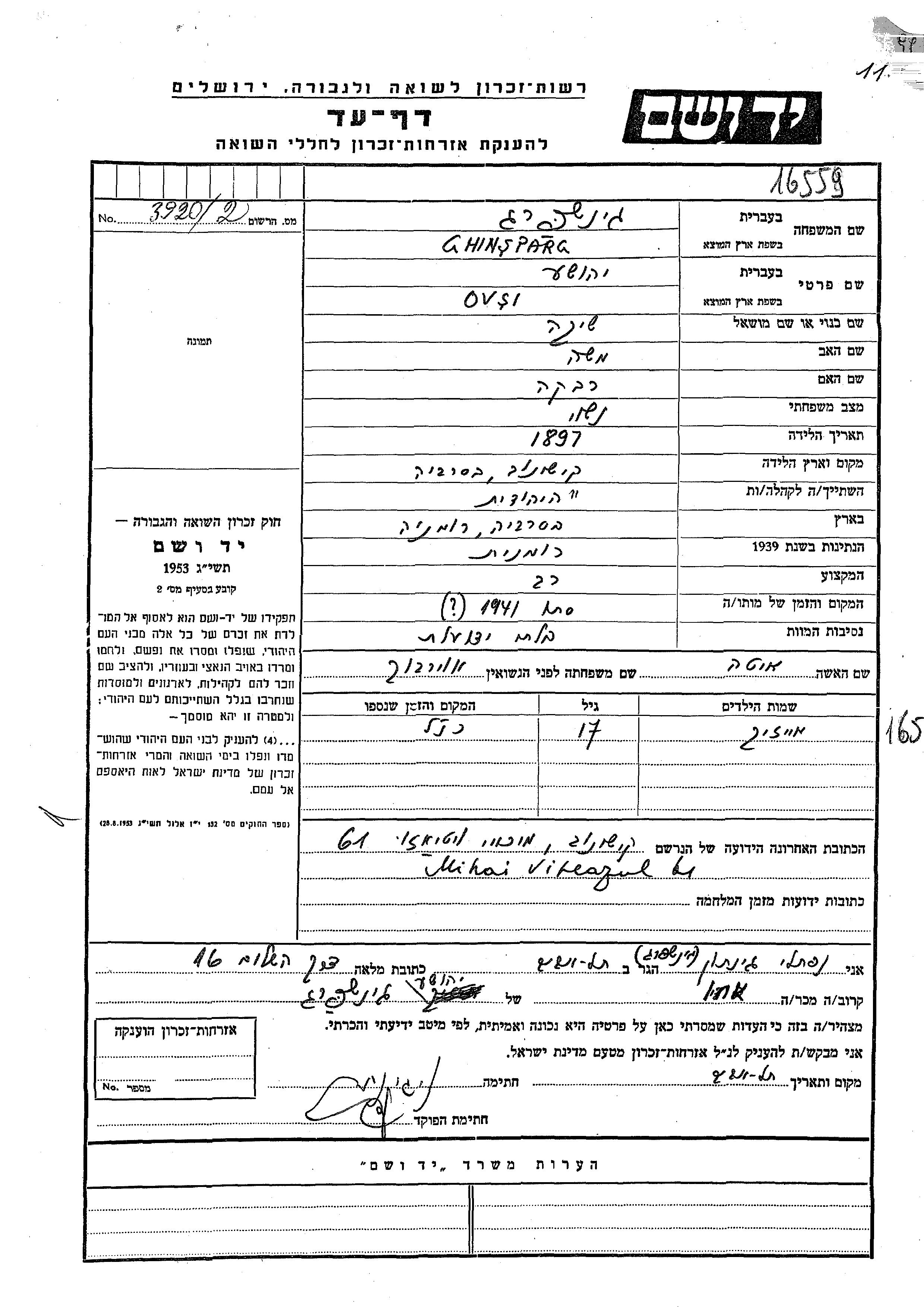 עיר/כפר, גטו/מחנה או אתר רצח או מחוז/אזור או מדינה. שם מקום ניתן לחפש רק בא-ב לטיני.
